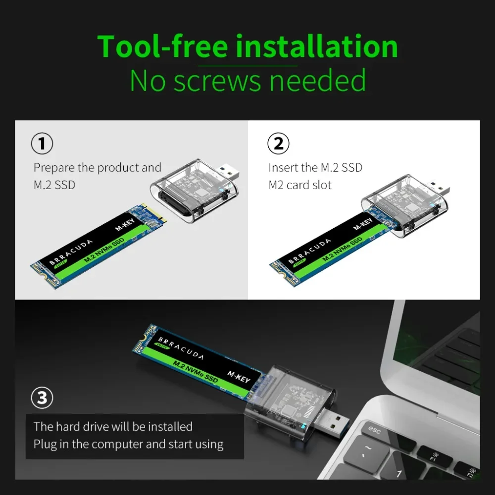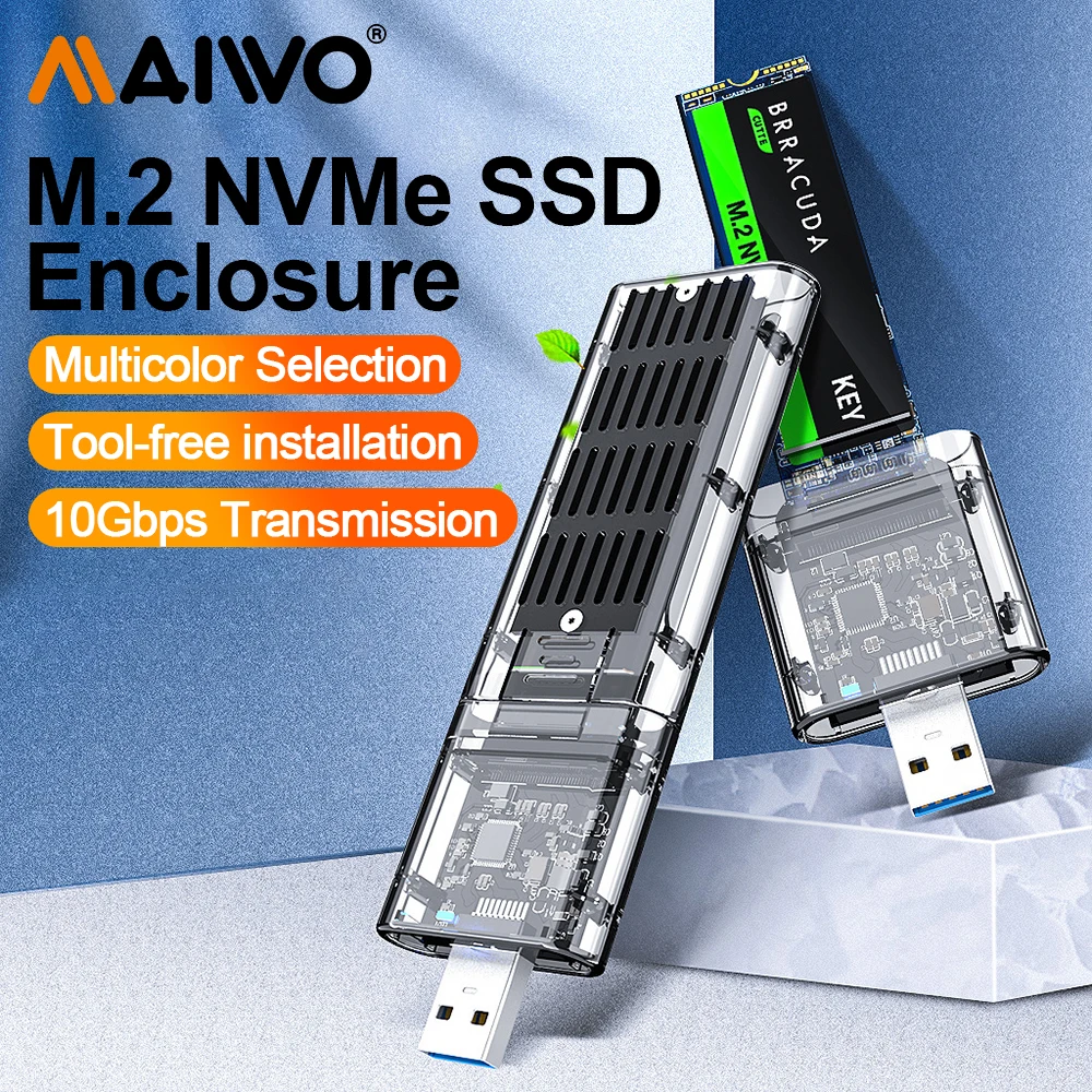 Comprar MAIWO-carcasa de SSD M.2 NVME, herramienta gratuita, adaptador externo transparente M.2 a USB tipo C, compatible con 2230 PCIe SSD
