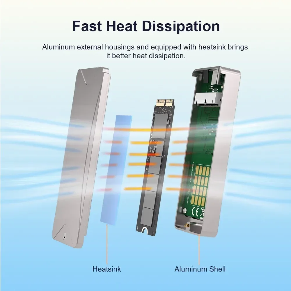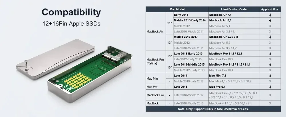 【 Adaptador M.2 NVME a AHCI 】La carcasa viene con un adaptador M.2 NVME a AHCI, cuando tiene un SSD NVME, pero desea actualizar para un 2013-2017 Mac Air/Pro (no incluye 2017 Macbook Pro A1706/A1707/A1708), puede sacar el adaptador de la carcasa, instale su SSD NVME y el adaptador en su ordenador, Actualice su ordenador y amplíe la capacidad de almacenamiento de su ordenador sin cargas.