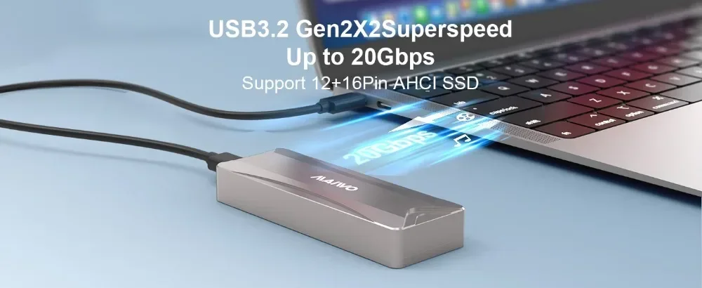 【Velocidad de transmisión de 20Gbps y mayor almacenamiento】Caja MAIWO K1702 M.2 con interfaz tipo C y Protocolo UASP, la velocidad máxima puede alcanzar los 20Gbps (confirma que tu interfaz admite 20Gbps, de lo contrario, la velocidad será lenta). Con este tipo de velocidad de transmisión, le ahorrará más tiempo y mejorará su eficiencia.