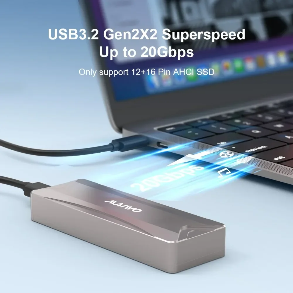 【Velocidad de transmisión de 20Gbps y mayor almacenamiento】Caja MAIWO K1702 M.2 con interfaz tipo C y Protocolo UASP, la velocidad máxima puede alcanzar los 20Gbps (confirma que tu interfaz admite 20Gbps, de lo contrario, la velocidad será lenta). Con este tipo de velocidad de transmisión, le ahorrará más tiempo y mejorará su eficiencia.