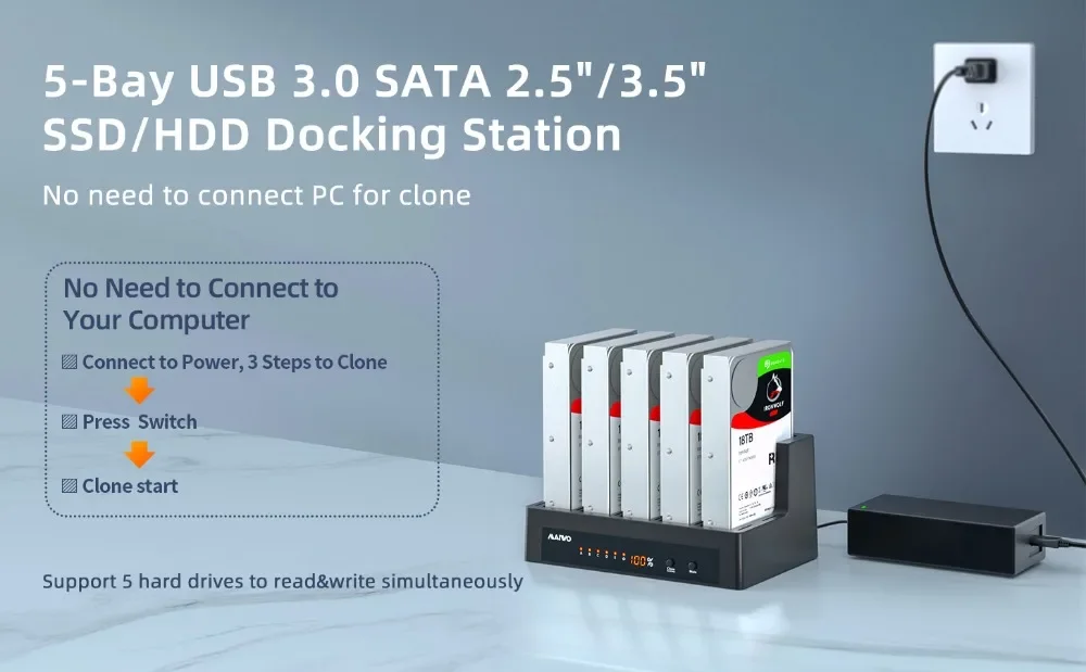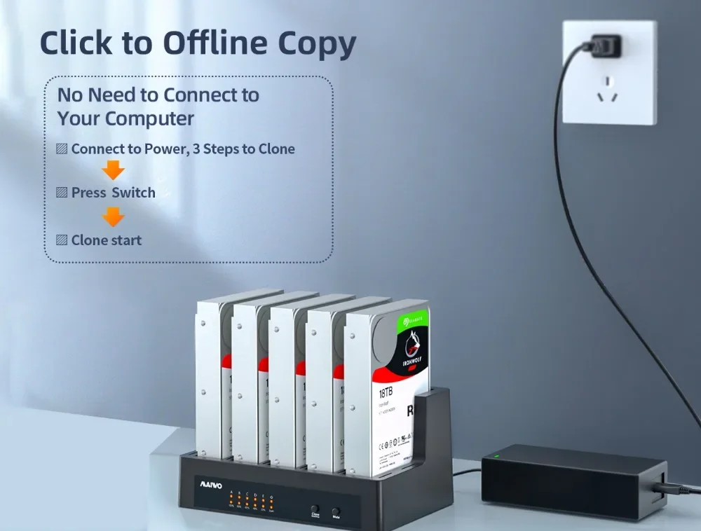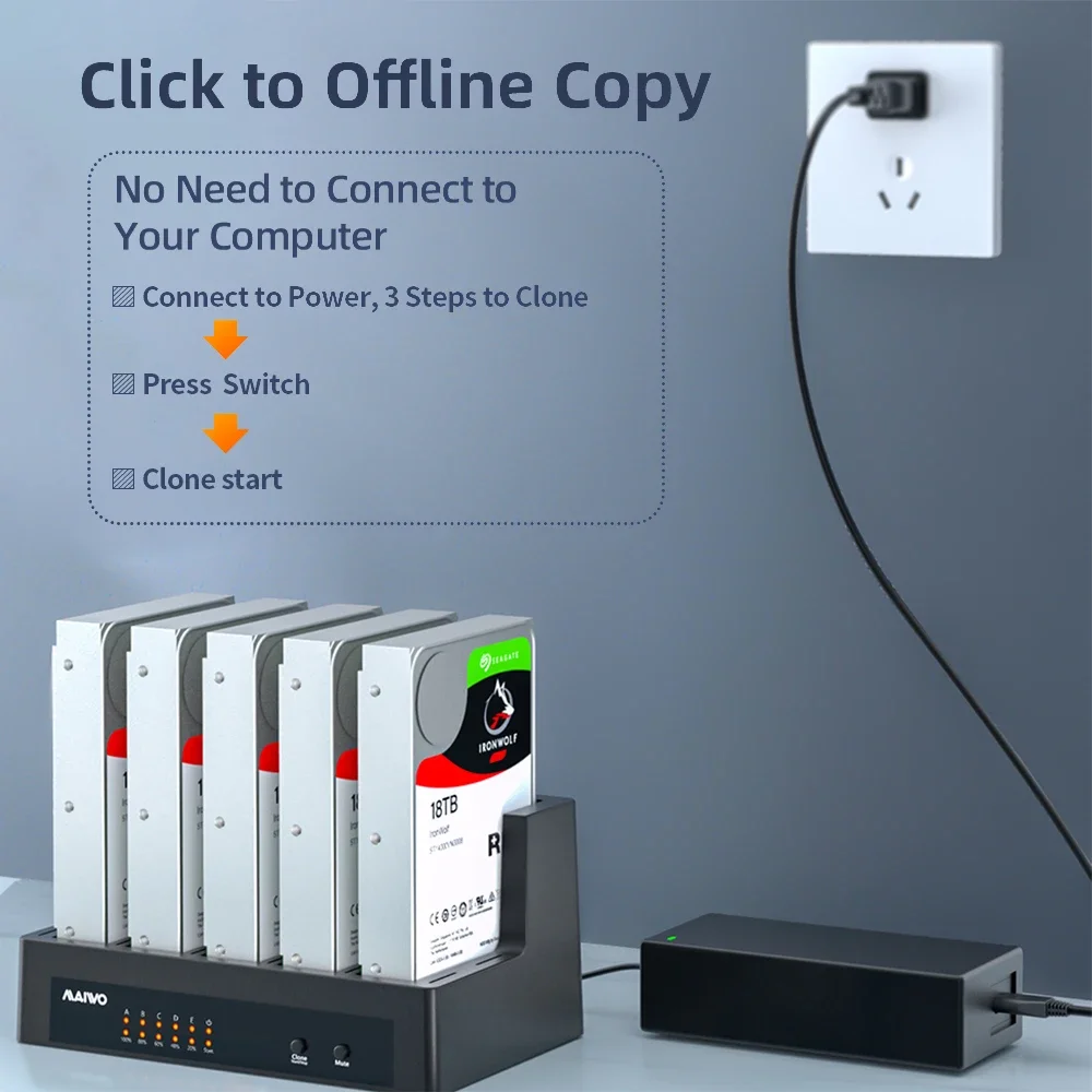 Operación de duplicación independiente/clonación sin conexión: admite clonador y duplicador de disco duro con indicador LED, desde una unidad A de alta velocidad hasta copias de clonación de unidad B, HDD de origen a HDD de destino sin conectarse al ordenador