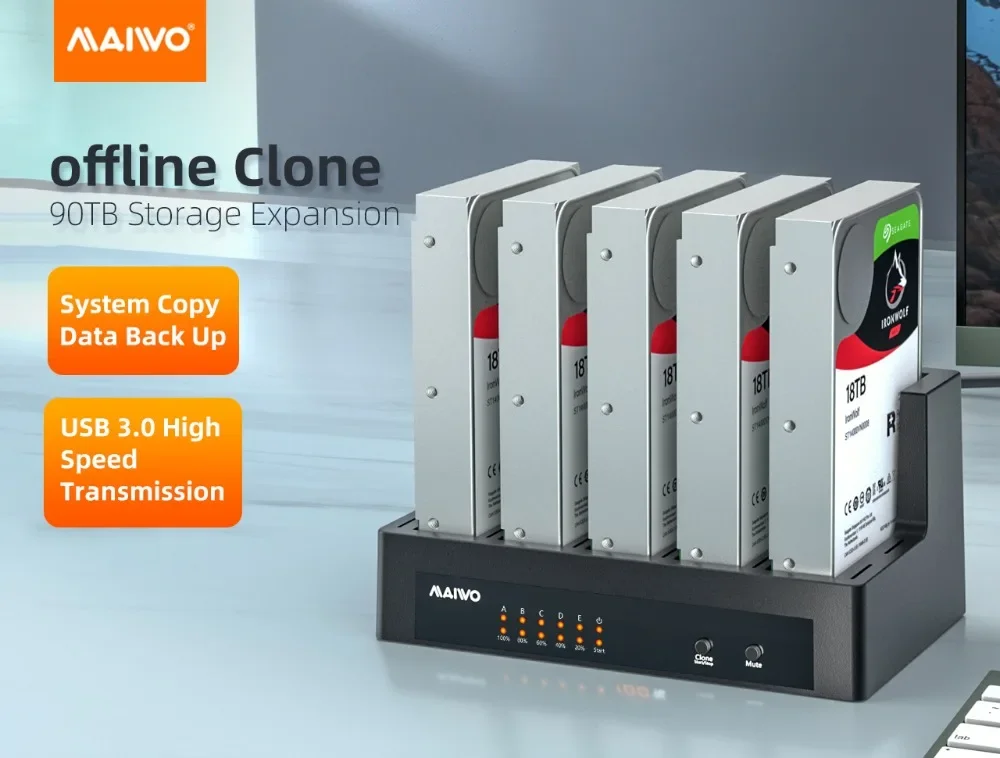 Comprar MAIWO-estación de acoplamiento para disco duro de 3,0/2,5 pulgadas, estación de acoplamiento para HDD, con clon sin conexión, SATA a USB 3,5