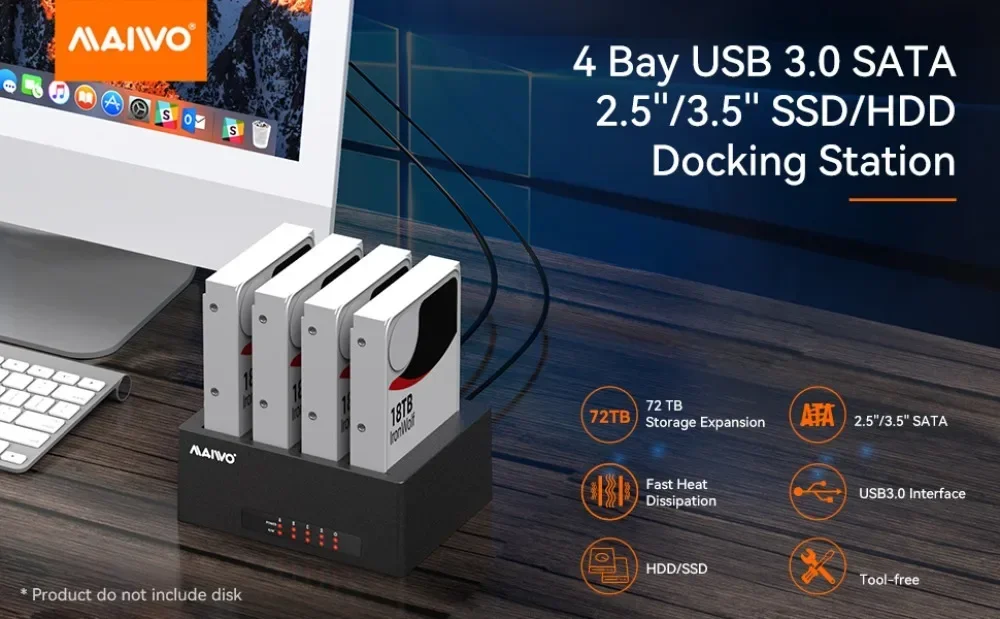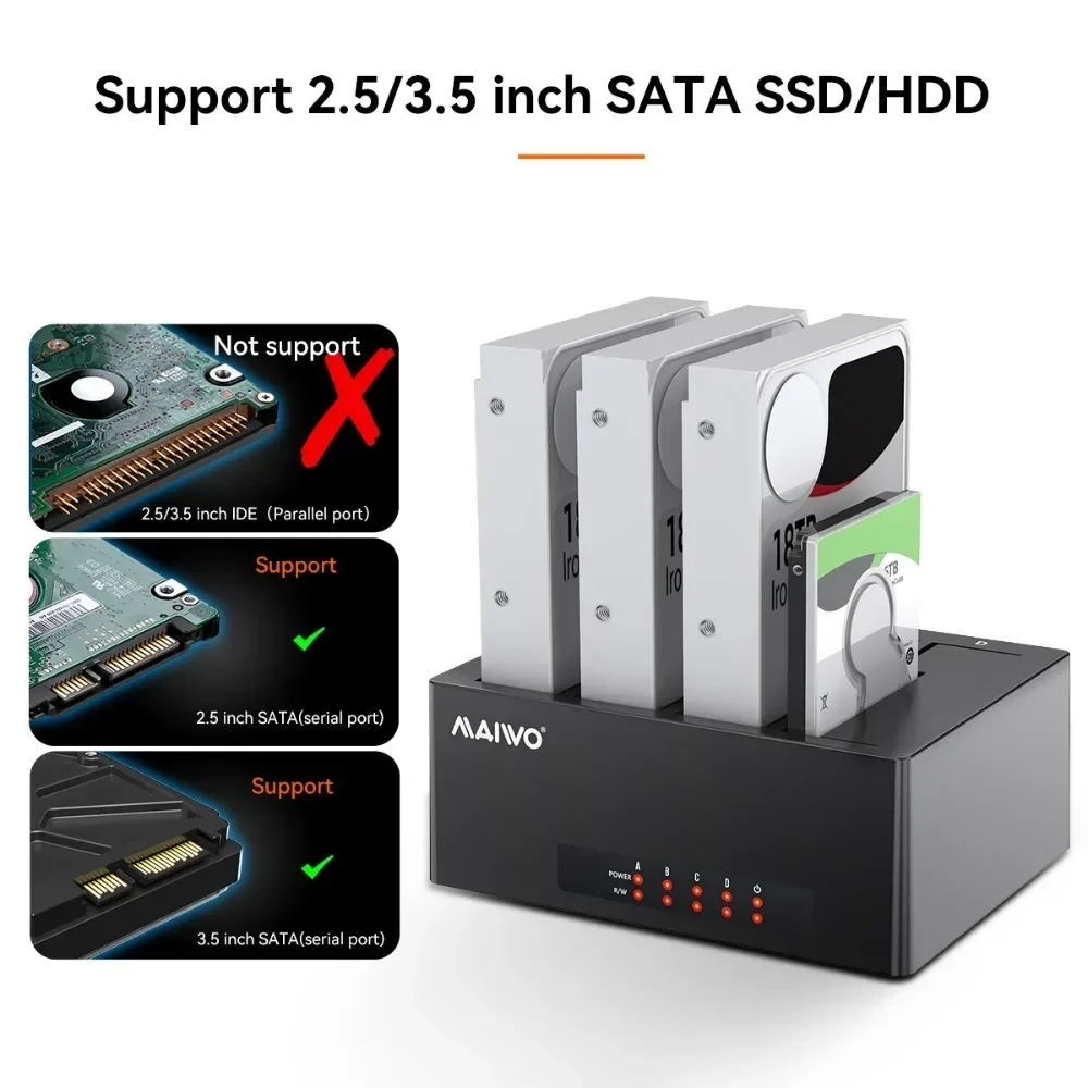 Comprar MAIWO-estación de acoplamiento de disco duro de 4 bahías, tipo C a USB 3,0, multibahía externa para HDD SDD de 2,5/3,5 pulgadas