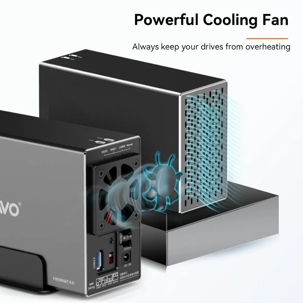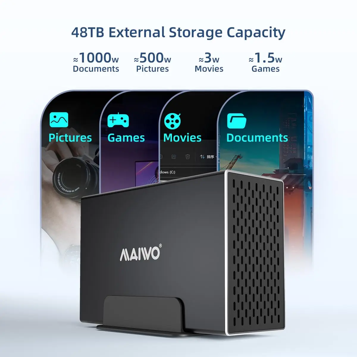 【Gran capacidad de 48 TB】El gabinete de almacenamiento de disco duro externo tiene 2 ranuras para unidades, cada ranura admite HDD SATA de 18 TB y 3,5 pulgadas, 48 TB de capacidad en total.
