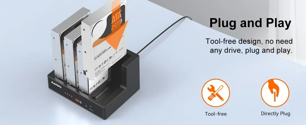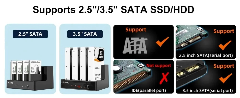 ●【Clonación y duplicador sin conexión】: la base del disco duro se puede utilizar para clonar/copiar sin conexión desde un disco duro de una fuente a un disco objetivo sin estar conectado a una computadora, o como almacenamiento externo para transferir datos entre el disco duro y la computadora.