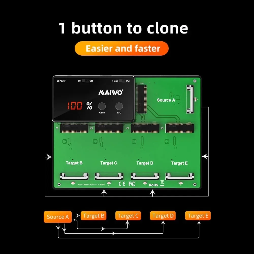 Comprar MAIWO-estación de acoplamiento M.2 mSATA SSD, carcasa de disco duro externo, duplicador de adaptador de tarjeta de memoria, compatible con clon sin conexión, 5 bahías