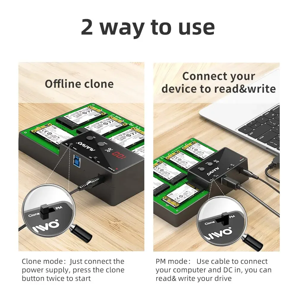 El duplicador MAIWO K3015mSATA admite la clonación gratuita sin conexión. No se necesita ordenador.