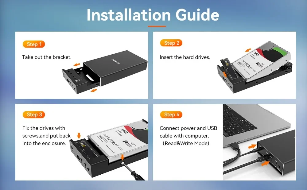 【Mejor protección y rápida disipación del calor】 Hecho de aleación de aluminio Premium, duradero y excelente para la disipación del calor, no se necesita ventilador de refrigeración para su trabajo de alta intensidad. Construcción sólida para sostener el disco duro firmemente, el lado de los agujeros de emisión del marco medio en la excelente disipación de calor. El modo de suspensión automática ayuda a extender la vida útil de sus discos duros.