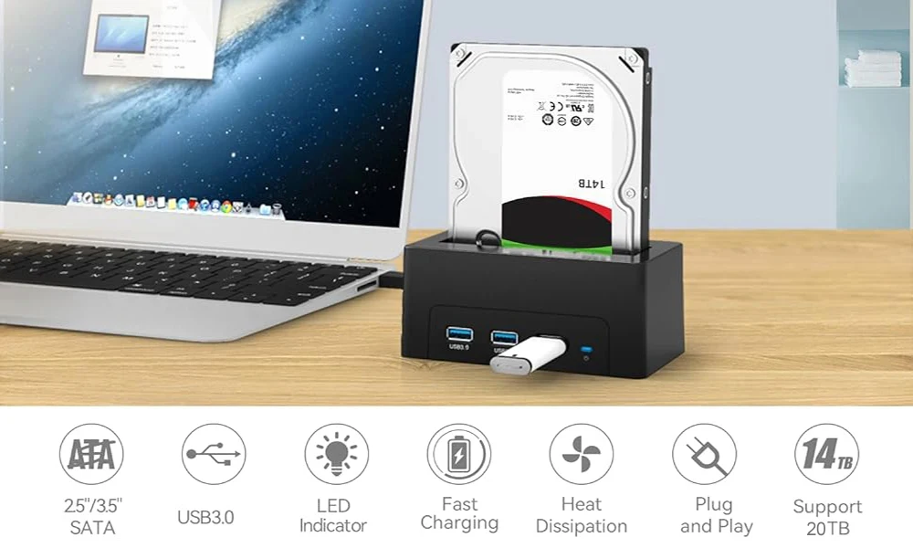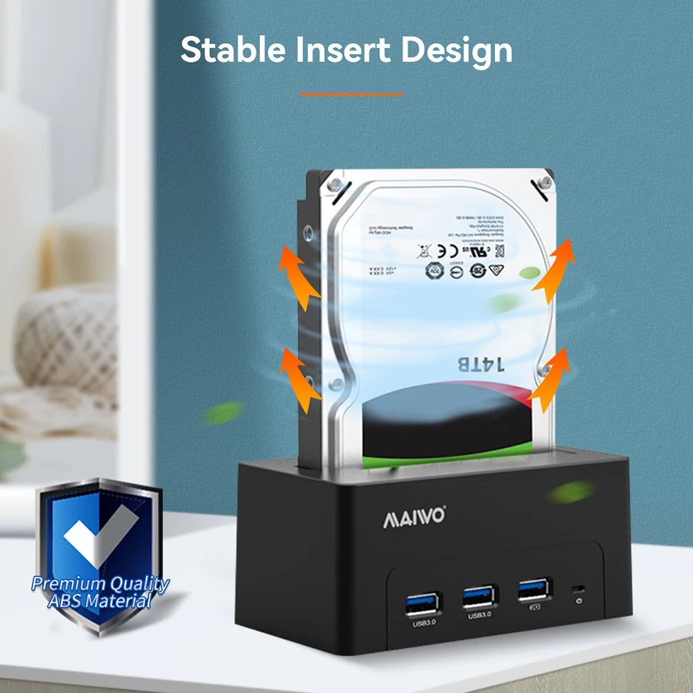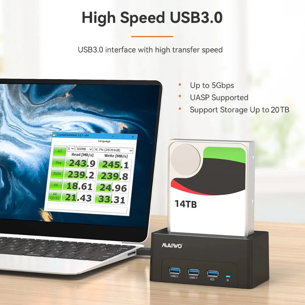 Comprar MAIWO-funda de HDD de 3,5 pulgadas, estación de acoplamiento USB a SATA para 2,5/3,5, SATA HDD SSD con 2 puertos USB 3,0, 1 puerto de carga rápida
