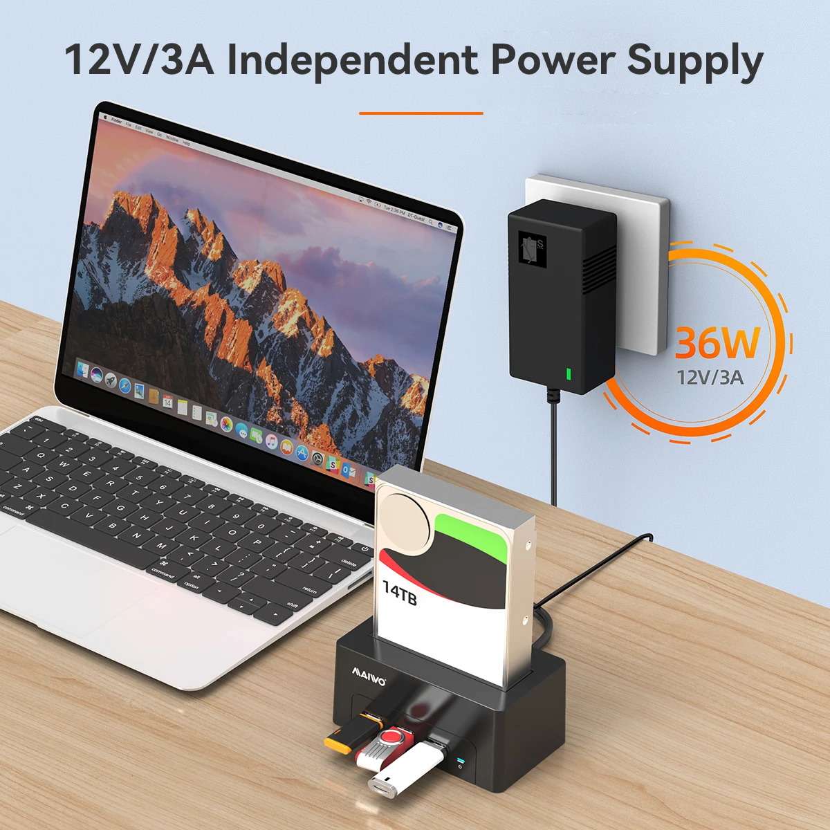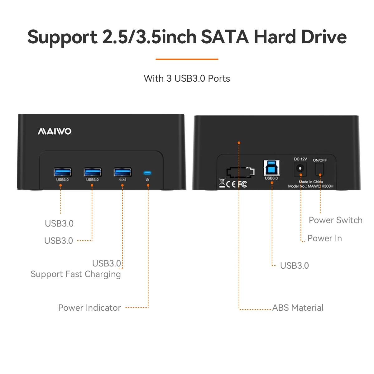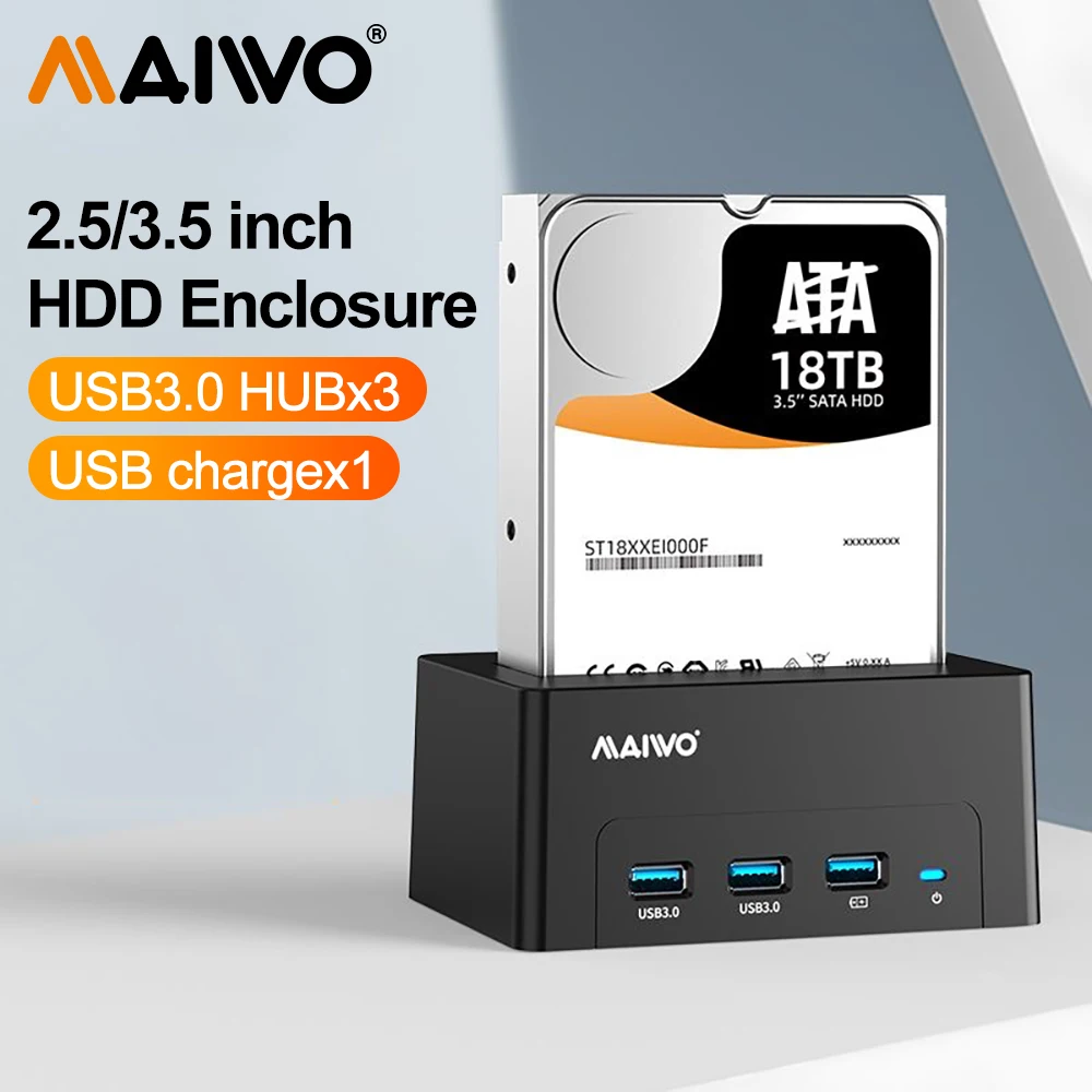 Comprar MAIWO-funda de HDD de 3,5 pulgadas, estación de acoplamiento USB a SATA para 2,5/3,5, SATA HDD SSD con 2 puertos USB 3,0, 1 puerto de carga rápida