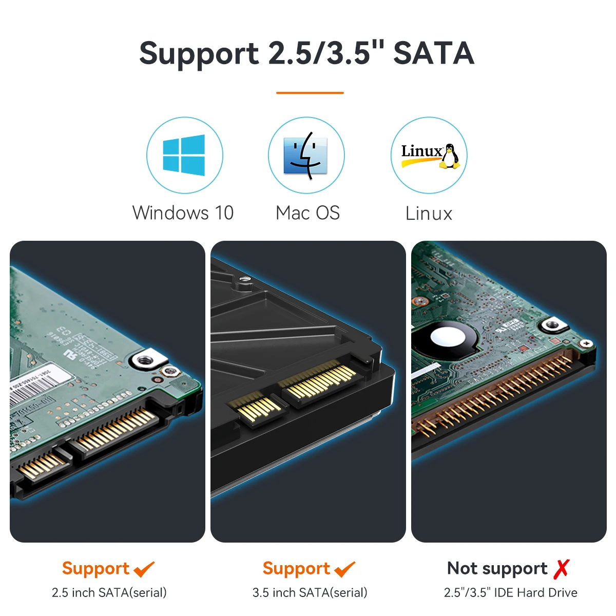 【Compatibilidad】: Compatible con Windows y Linux, compatible con HDD SSD de 2,5/3,5 pulgadas