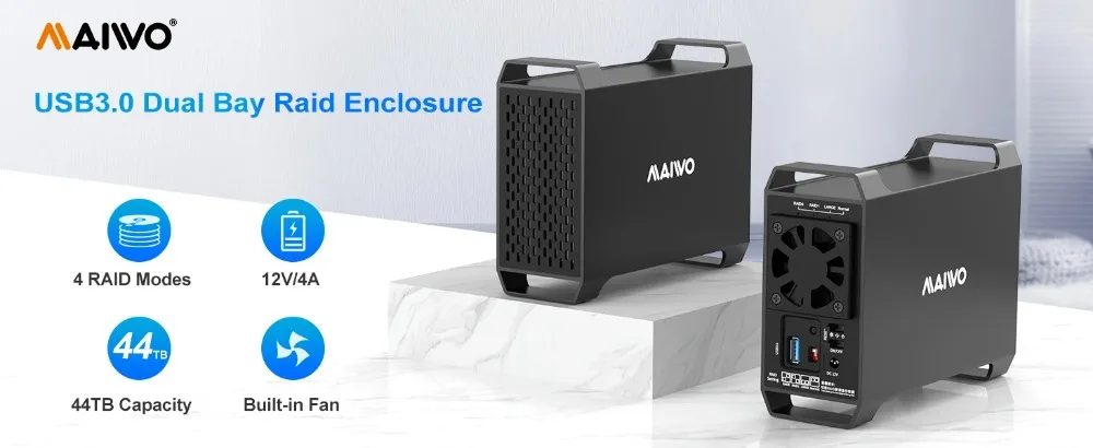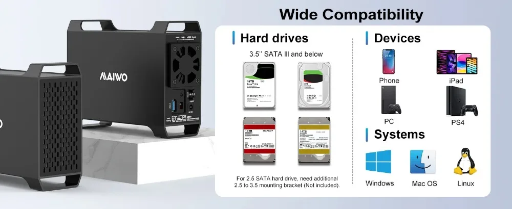 【Compatibilidad】Esta carcasa para disco duro de 2 bahías es compatible con HDD SATA de 3,5", admite un solo disco con capacidad de 24 TB, admite totalmente una expansión de capacidad de almacenamiento de 48 TB, más capacidad, más diversión.