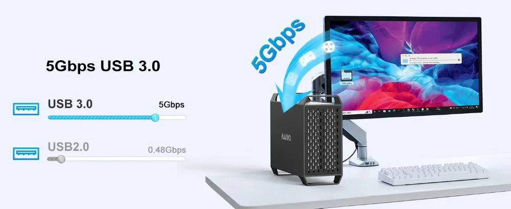 【Frecuencia de transferencia de 5 Gbps】El USB3.0 HDD Raid enclosure puede alcanzar un ancho de banda de hasta 5 Gbps, transferir archivos 1G en segundos, reducir el tiempo de espera y mejorar la eficiencia.【Vale la pena señalar】 que debido al límite de velocidad del propio disco duro mecánico, la velocidad máxima de transferencia del 3.El disco SATA de 5'' suele ser inferior a 5 Gbps.
