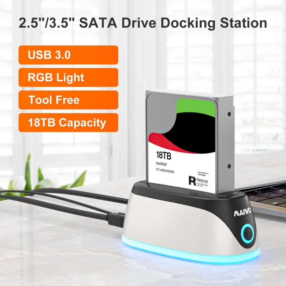 Comprar MAIWO HDD estación de acoplamiento SATA a USB 3,0 adaptador con caja de disco duro RGB para 2,5 3,5 SSD caja de disco Dock carcasa de disco duro