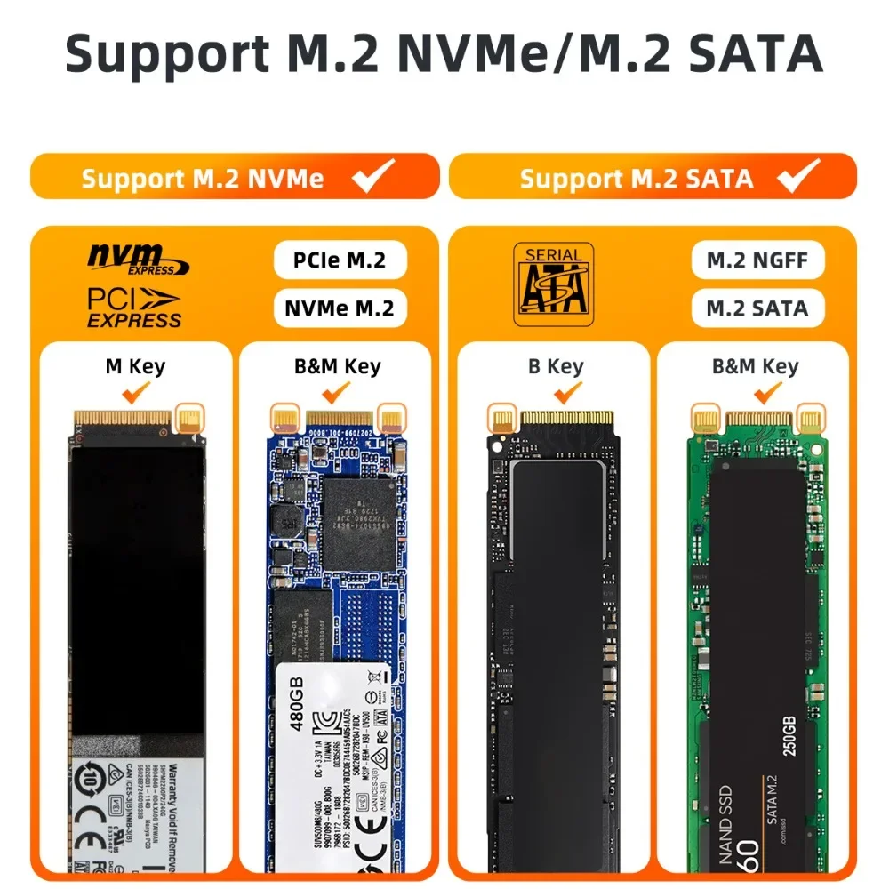 Este adaptador/clonador M.2 NVMe SATA SSD tiene una fuente de alimentación independiente de 5 V 3 A para garantizar que funcione de manera estable incluso con una carga de trabajo enorme.