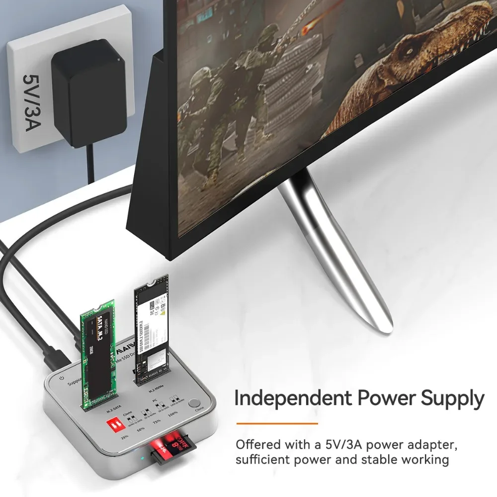 Estación de acoplamiento SSD MAIWO Dual Bay tipo C a M.2 NVMe SATA: lectura/escritura/clonación sin conexión