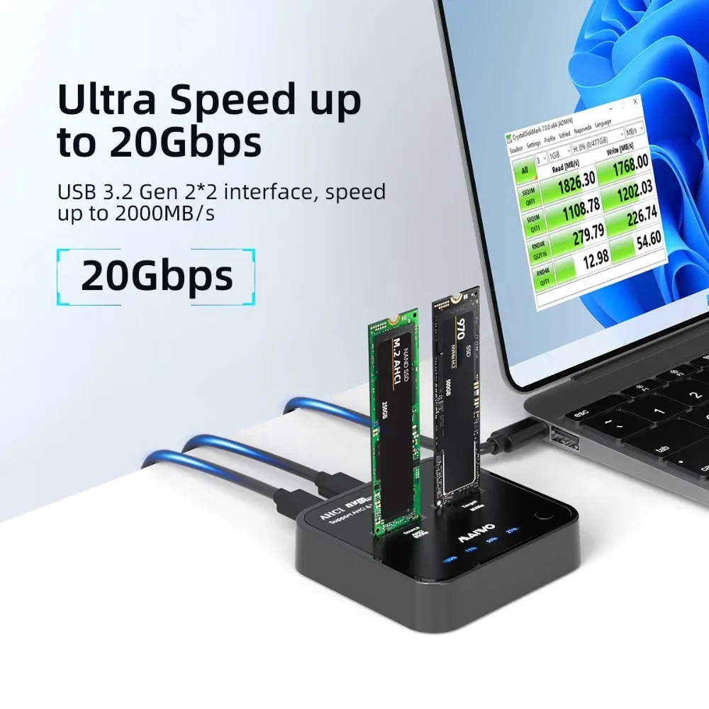 【MAX 20Gbps bandwidth】:The dock with USB 3.1 Gen 2 interface, the max transmission speed can reach 2000MB/s, transfer 1G file within 1 second, kinds of HD movies and TV serials instantaneous transmission,transfer and watch, no longer need to wait.