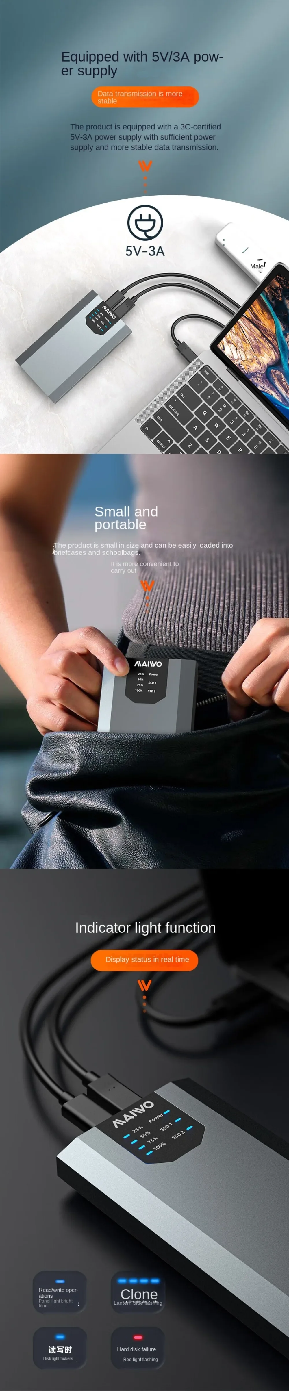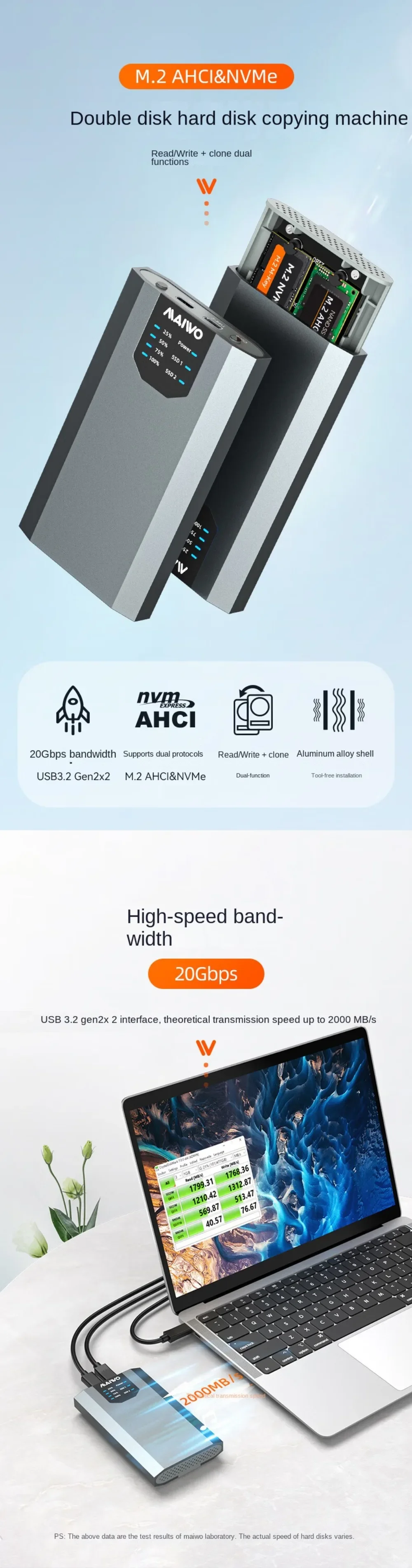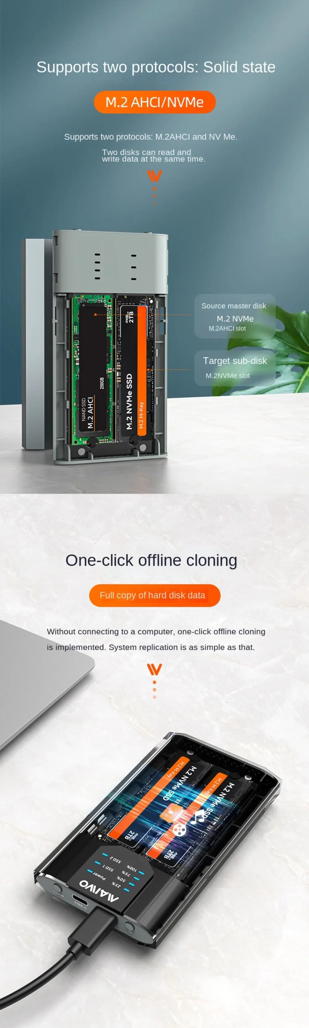 Comprar MAIWO-máquina de copia de disco duro móvil de estado sólido M.2 Nvme, Protocolo AHCI/NVMe, carcasa de aleación de aluminio de doble bahía con clonación