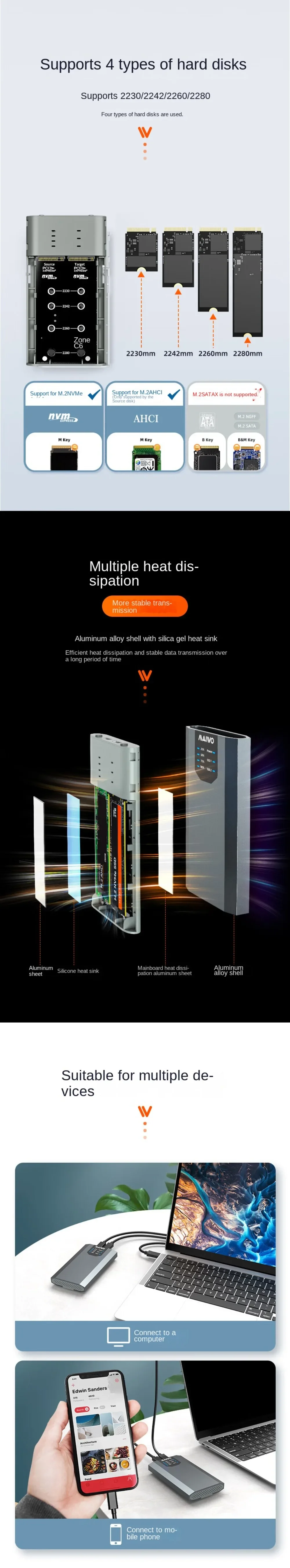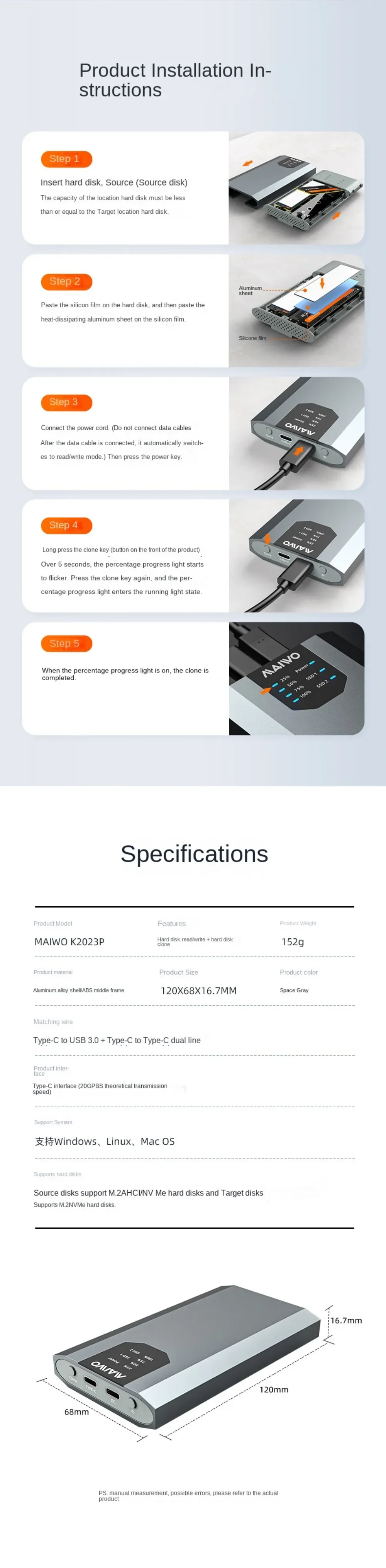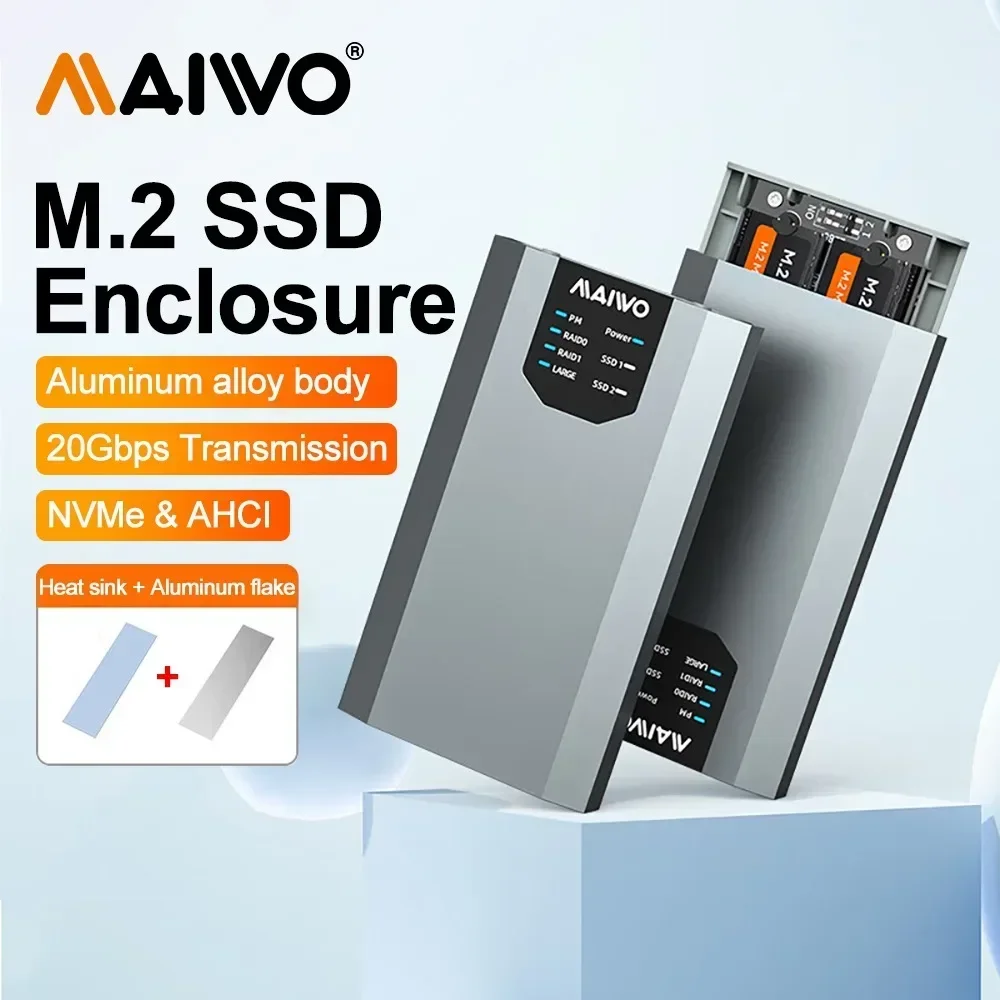 Comprar MAIWO-máquina de copia de disco duro móvil de estado sólido M.2 Nvme, Protocolo AHCI/NVMe, carcasa de aleación de aluminio de doble bahía con clonación