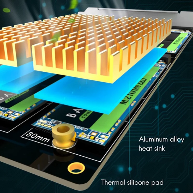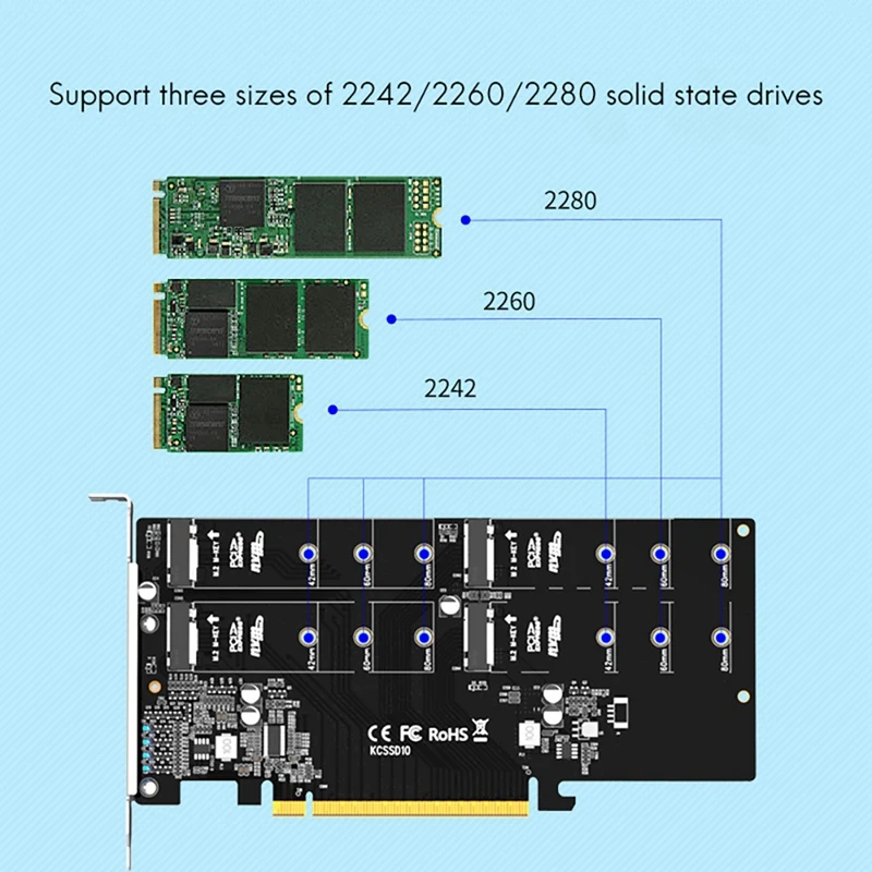 1. Tarjeta de matriz SSD de cuatro bahías, tarjeta de expansión de aceleración SSD de alta velocidad PCIE X16 a M.2 NVMe KCSSD10