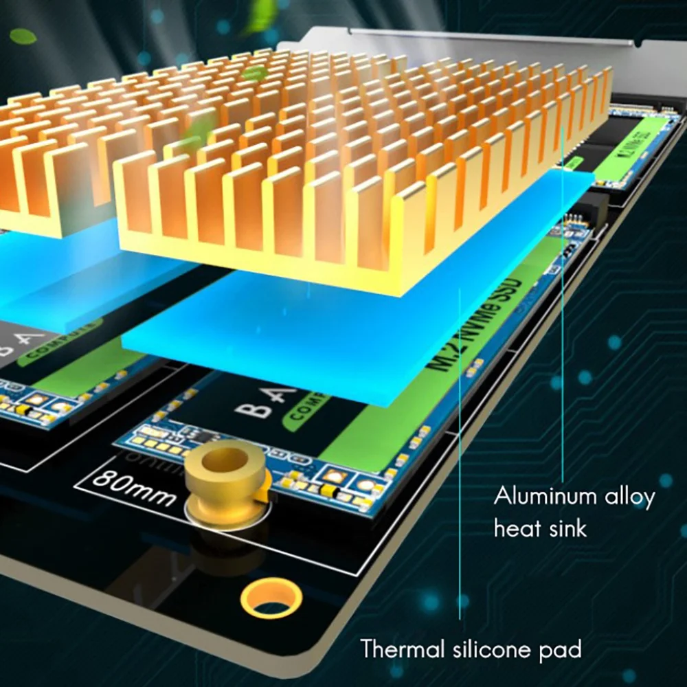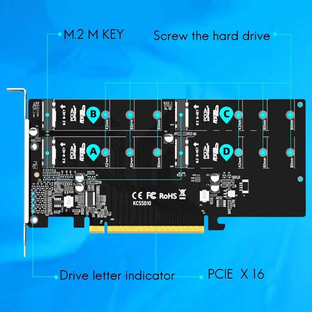 Comprar MAIWO tarjeta adaptadora KCSSD10 PCIE X16, Protocolo M.2 NVMe, unidad de estado sólido de cuatro bahías, tarjeta adaptadora de refrigeración