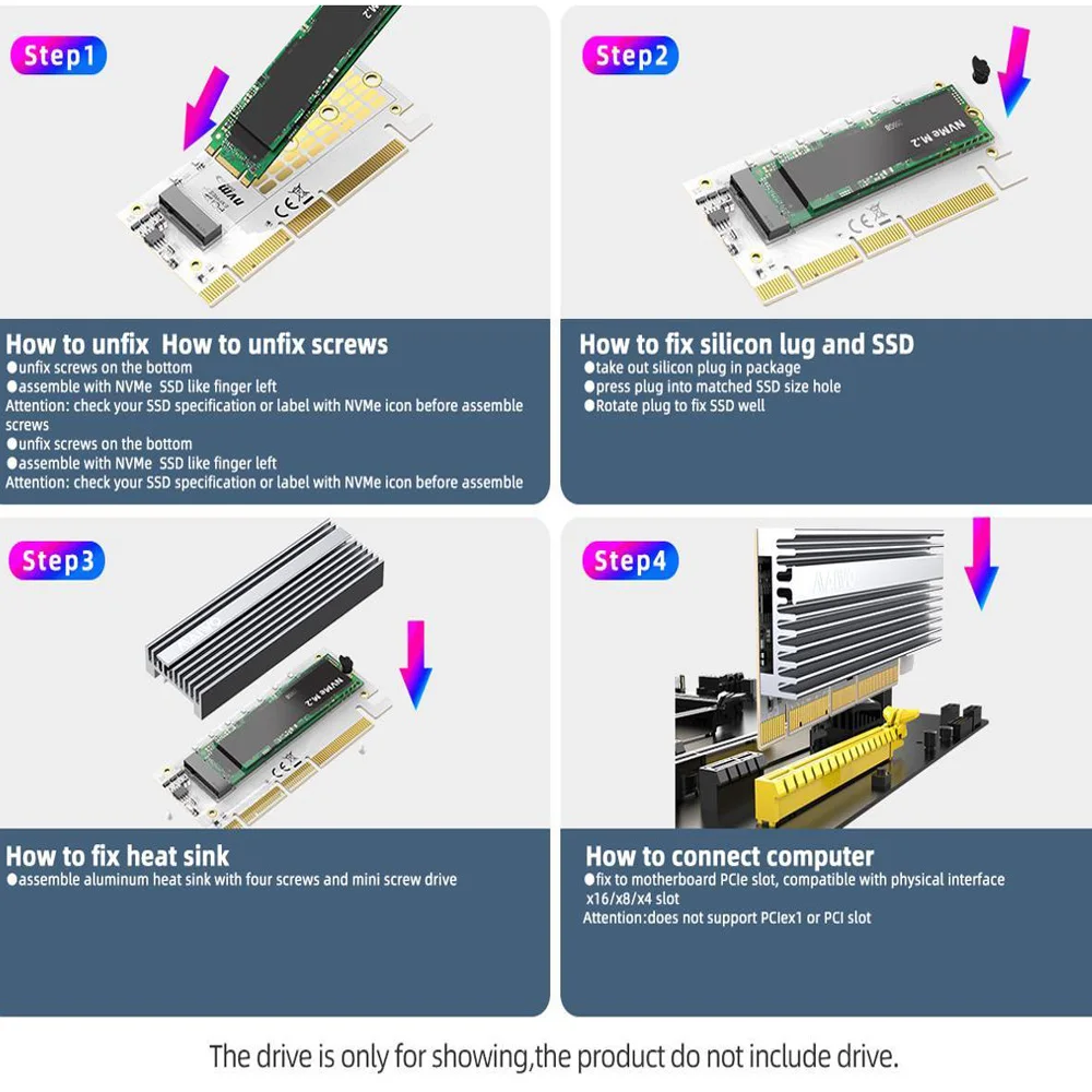 Amplia compatibilidad: compatible con PCIe 3,0/PCIe 4,0/PCIe 5,0 y PCIe X4 x8 x16, puede aprovechar todo el potencial de NVMe SSD de su alto rendimiento, compatible con Windows 7/ 8 /10, linux.