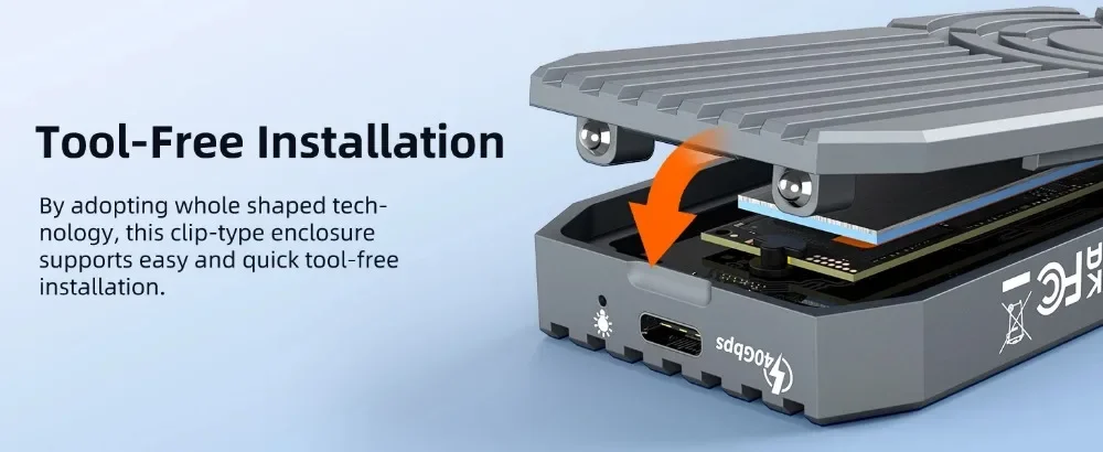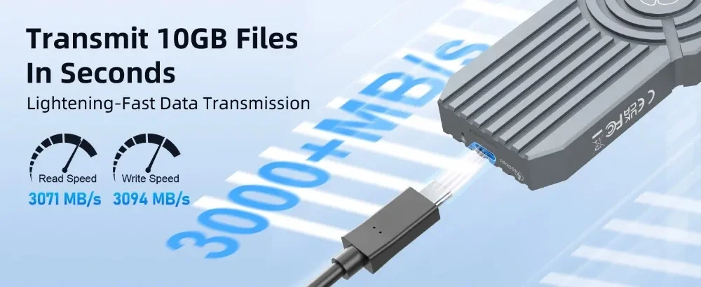 4.Interfaz USB 4.0 tipo C: con una interfaz USB 4.0 tipo C, este gabinete logra velocidades de transferencia de datos ultrarrápidas de hasta 40 Gbps, lo que permite una transferencia perfecta de 3000 MB/s en solo un segundo.
