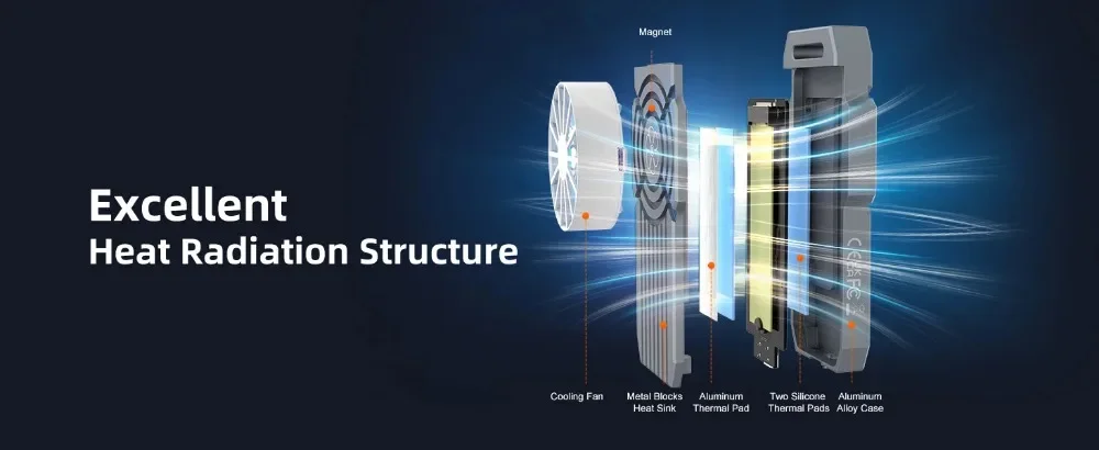 2.Disipación de calor eficiente: equipada con almohadillas térmicas de silicona duales, una placa de aluminio conductora de calor y una ranura metálica conductora de calor, esta carcasa SSD disipa eficazmente el calor, evitando que su disco duro se ralentice debido al sobrecalentamiento.