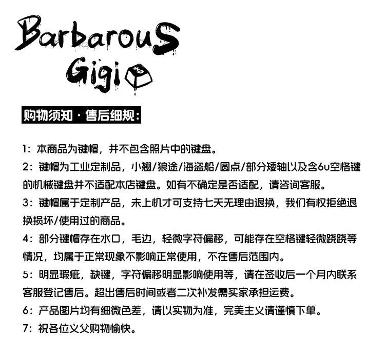 Material: PBTperfil keycap: chreeySensación táctil: tacto delicadoAmplia compatibilidad: este conjunto de teclas se adapta a la mayoría de los teclados del mercado, como61/64/68/75/84/87/980/104/108 teclados mecánicos para juegos e interruptores de tecladocon interruptores en forma de cruz.Contáctenos: Si tiene alguna pregunta, comuníquese con nosotros a tiempo.Le daremoslas mejores soluciones y solucionesConsejos cálidos: este producto es un conjunto de teclas.Debido a las diferentes imágenes del monitor, puede haber diferencias de color.Si no está seguro de si es compatible, por favor contáctenosContenido del paquete: Lo comprobaremos cuidadosamente antes del envío para asegurarnos de que no tenga ningún problema.1 x juego de teclas