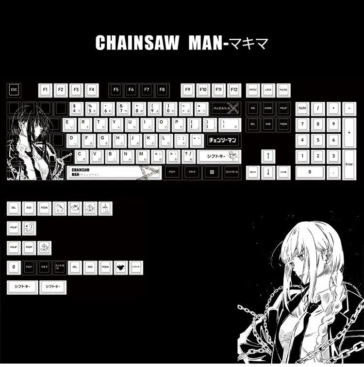 Comprar Makima Anime Keycaps motosierra hombre tema 127 teclas PBT Keycap Chreey Keycaps Japón Key Cap Teclado mecánico para 64/68/71/108