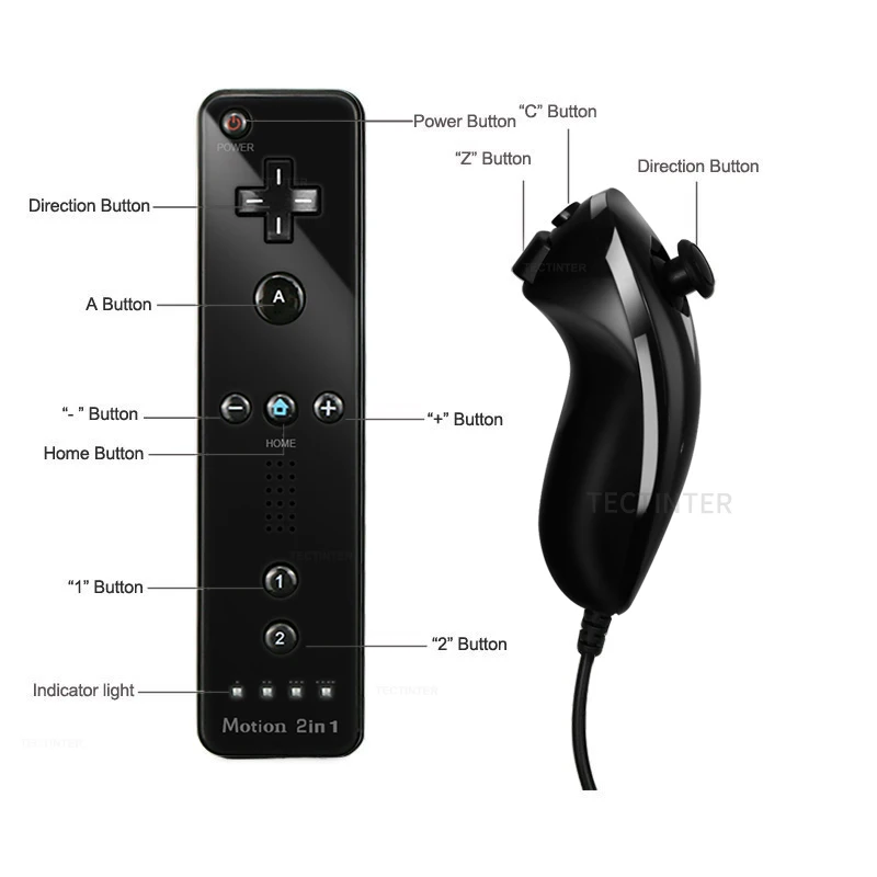 Este es un control remoto inalámbrico de alta sensibilidad y precisión que es compatible con la consola Nintend Wii. Es adecuado para juegos de Wii y también es compatible con la mayoría de juegos de Wii U. Altavoz incorporado y Motion Plus, cuenta con funciones de retroalimentación de vibración. Alimentado por 2 pilas AA (pilas no incluidas)
