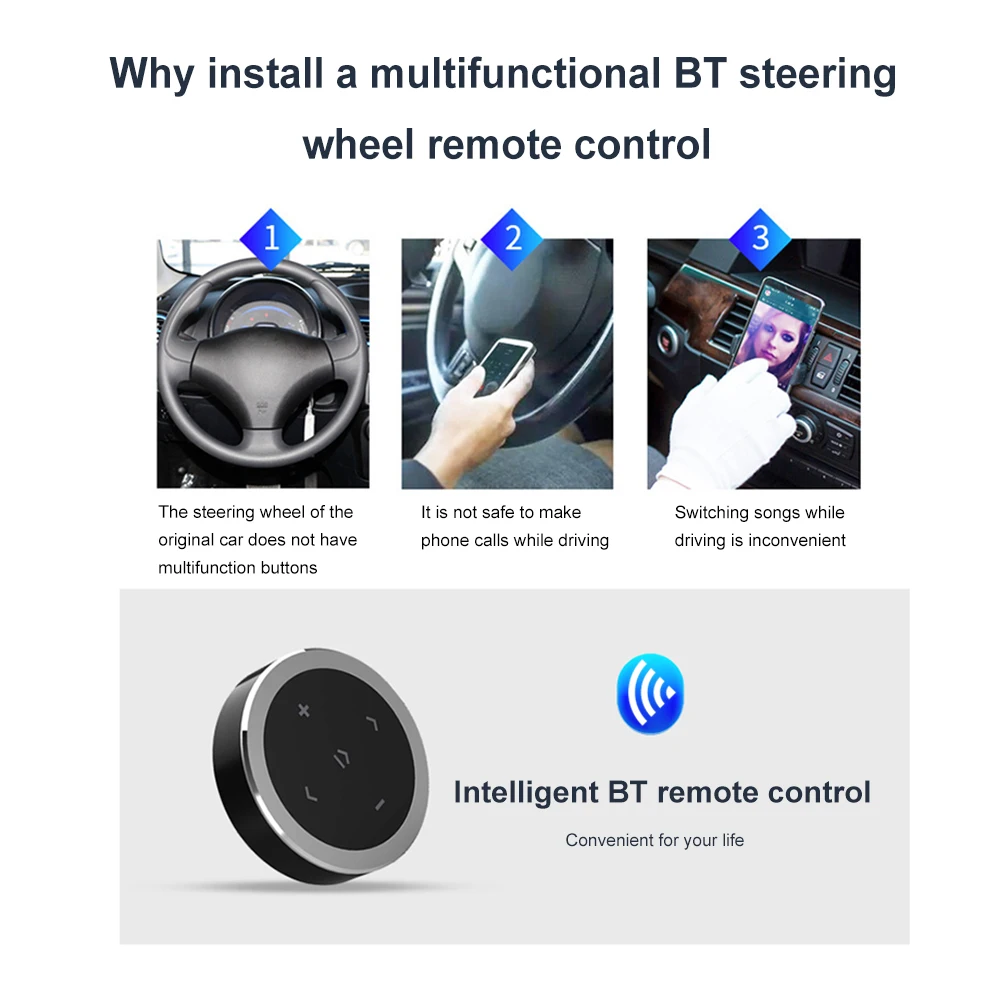 Característica:1. Botón Multimedia Inalámbrico compatible con Bluetooth:Controla tu teléfono de forma inalámbrica mientras conduces con la tecla multimedia. Puede Reproducir/detener música, aumentar/disminuir el volumen y avanzar/Rebobinar canciones rápidamente sin mirar su dispositivo.