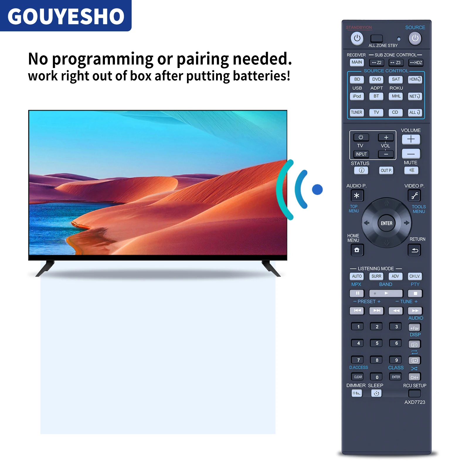 Diversos modelos de control remoto. A veces puede haber docenas de formas en forma, y no todas. Si no está seguro del modelo, comuníquese con el Servicio de Atención al Cliente para confirmar si los compradores compran el modelo incorrecto. Nuestra tienda no se hace responsable. Probamos dos veces antes del envío para asegurarnos de que no haya ningún problema con la calidad del producto en manos de los clientes. No admite ninguna razón para devolver los productos en un plazo de 30 días,