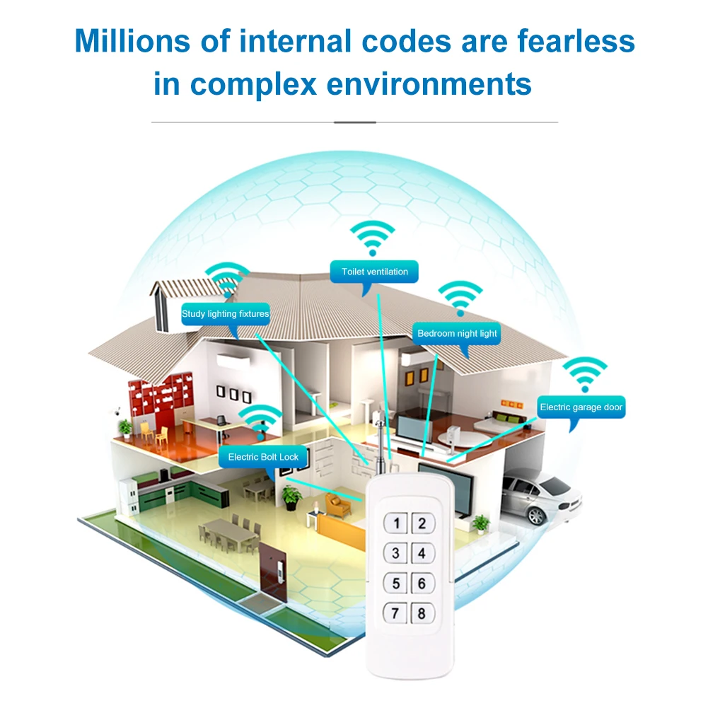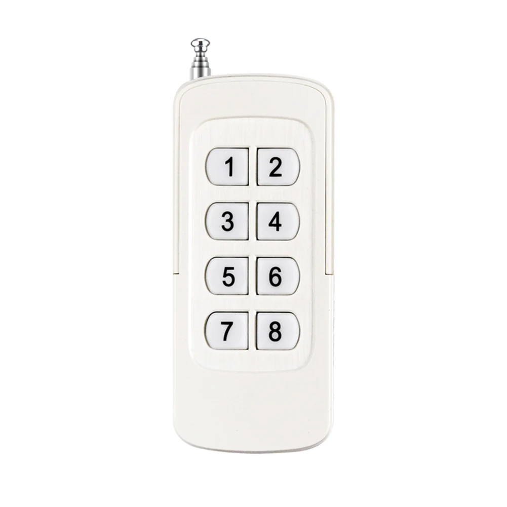 El control remoto de ocho botones con pegatina ultrafina de 1000 metros () utiliza el chip de codificación EV1527. Hay 20 bits en el chip que pueden preprogramar 1 millón de combinaciones de código interno, lo que hace que la tasa de repetición de código sea muy baja y proporciona una mayor seguridad. El producto tiene una buena distancia de control remoto y un consumo de energía ultra bajo. Se puede utilizar en control de iluminación, control remoto inteligente del hogar y otros campos.