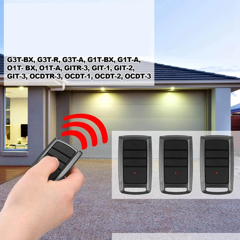 Modelos compatibles: este control remoto para abrir puertas de garaje es compatible con O3T-A, O3T-BX, G3T-BX, G3T-R, G3T-A, G1T-A, O1T-BX, O1T-A, GITR-3, GIT-1, GIT-2, GIT-3, OCDTR-3, OCDT-1, OCDT-2, OCDT-3; También es compatible con Intellicode y Dodger de códigos