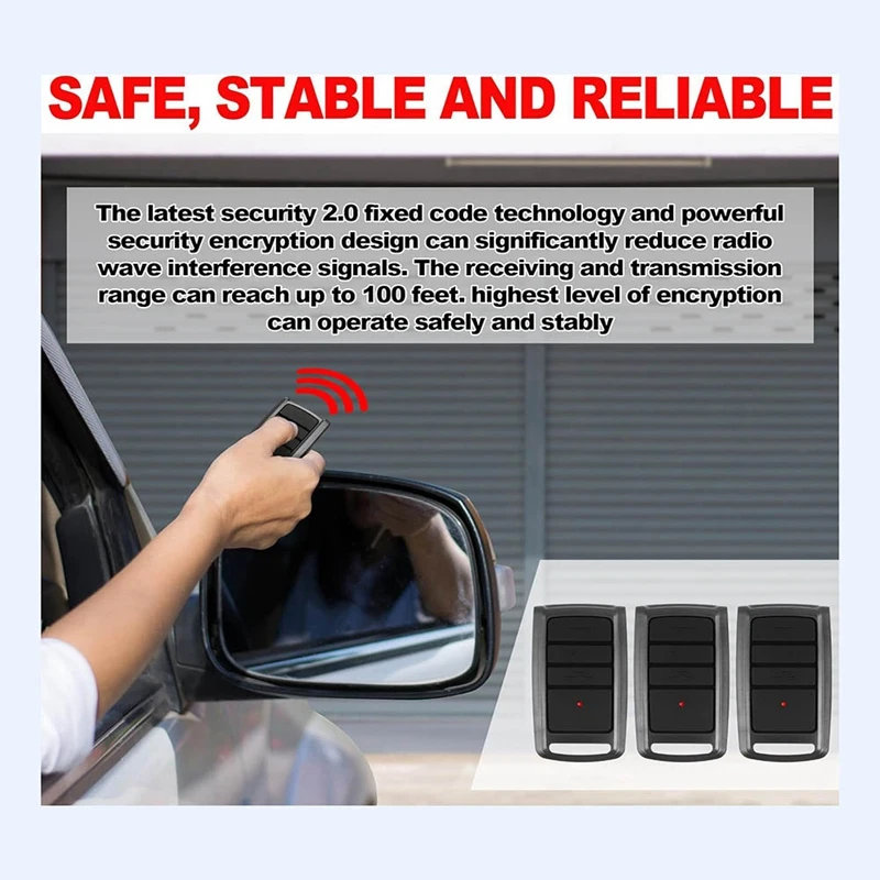 Alcance y transmisión de señal robustos: el control remoto de garaje de 3 botones es capaz de funcionar a más de 164 pies de distancia del abridor de puerta de garaje;Cuenta con una fuerte transmisión de señal y una amplia cobertura diseñada para reducir eficazmente la interferencia de las ondas de radio;Esto garantiza una funcionalidad y un funcionamiento perfectas, lo que garantiza la posibilidad de abrir la puerta de su garaje cuando sea necesario.