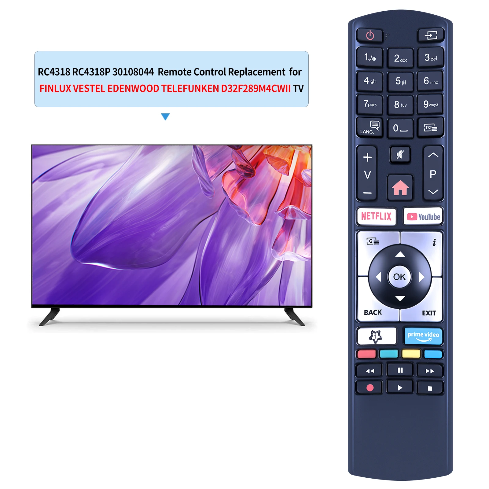 Comprar Mando a distancia RC4318 RC4318P para Vestel Finlux Telefunken Edenwood 4K Smart TV C40U446 C40U446A D40U297M4CW D40F289R4CW, nuevo