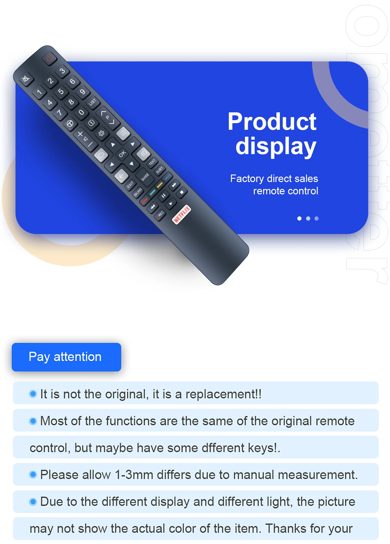 Asegúrese de que este es el control remoto correcto antes de realizar el pedido. Gracias ~