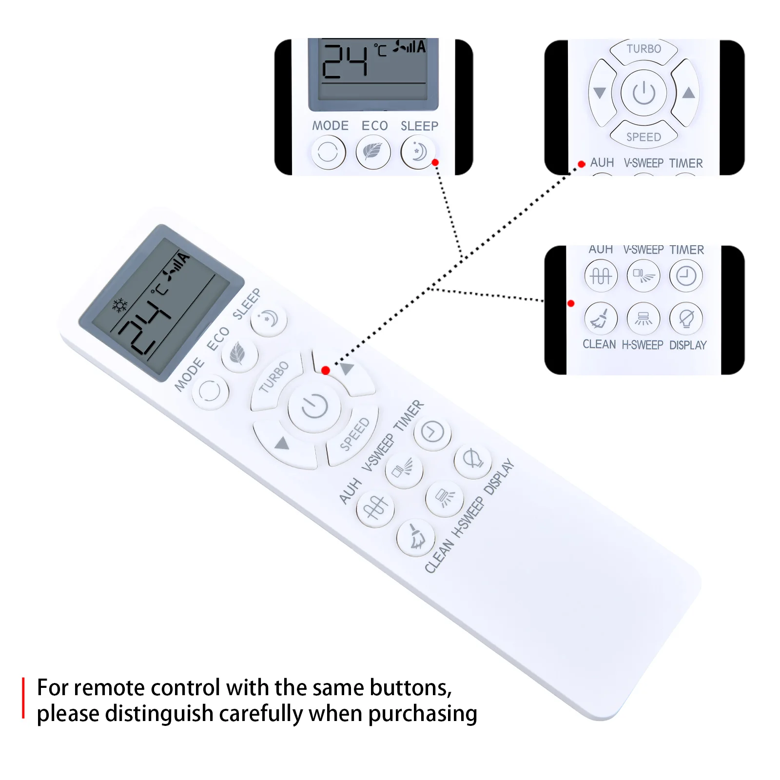 Diversos modelos de control remoto. A veces puede haber docenas de formas en forma, y no todas. Si no está seguro del modelo, comuníquese con el Servicio de Atención al Cliente para confirmar si los compradores compran el modelo incorrecto. Nuestra tienda no se hace responsable. Probamos dos veces antes del envío para asegurarnos de que no haya ningún problema con la calidad del producto en manos de los clientes. No admite ninguna razón para devolver los productos en un plazo de 30 días,