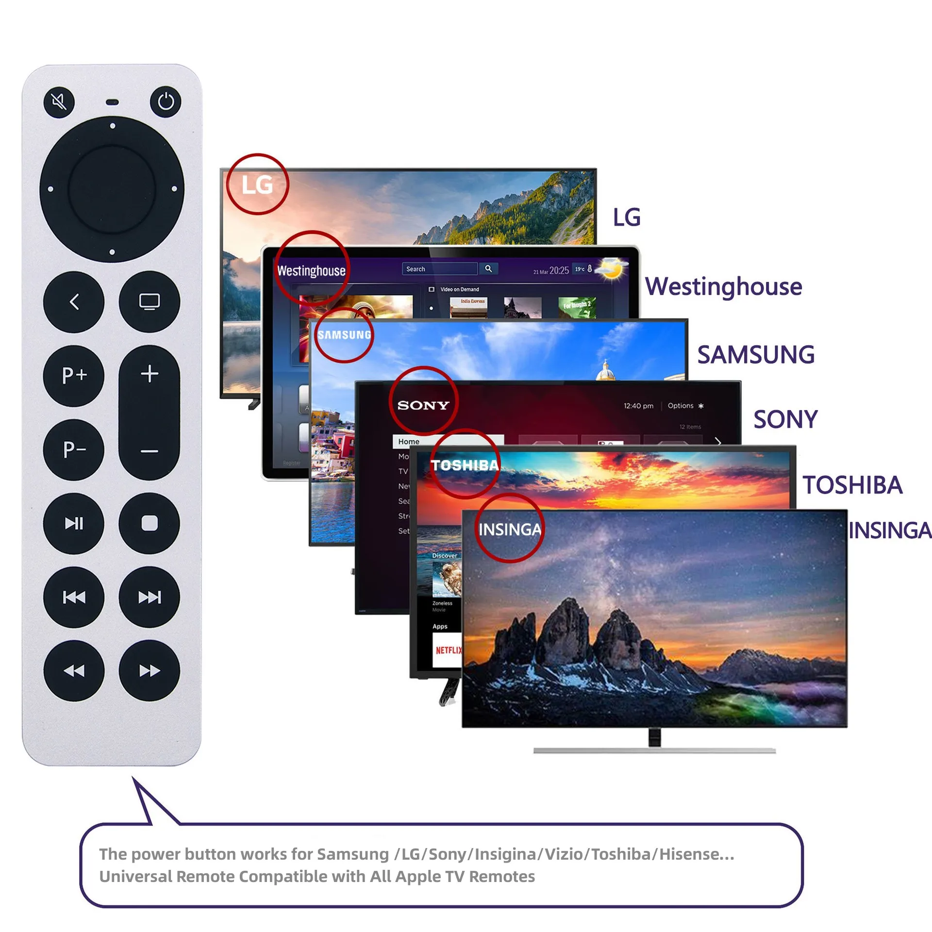 【La tecla de encendido funciona directamente para la marca de TV 】Reemplazo de Apple TV Remote Compatible con Samsung,LG,Sony,Westinghouse,Insignia,Toshiba sin ninguna configuración, PERO NO para cualquier TV ROKU.