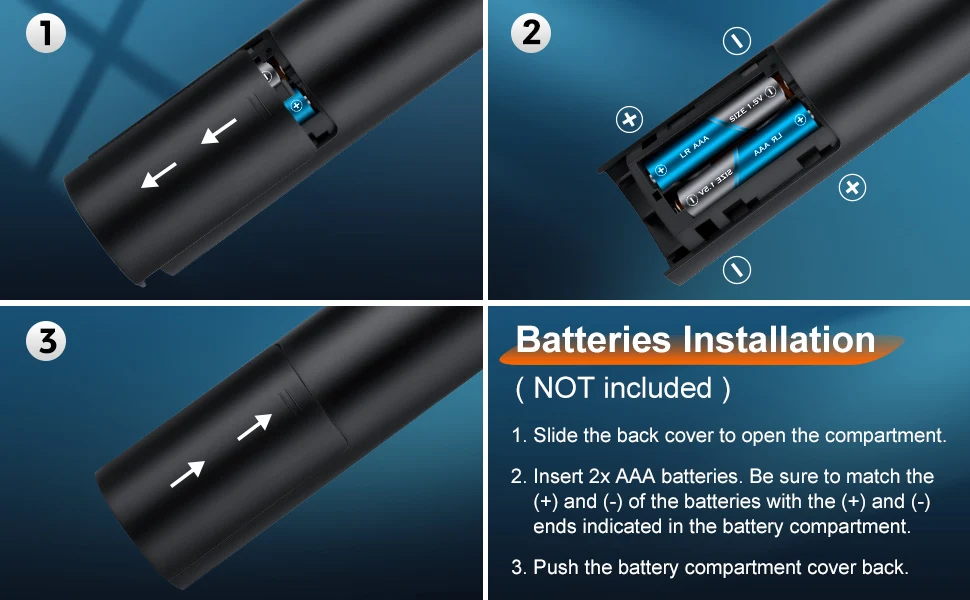 【Características del producto】Funciona de inmediato. Se requieren 2 pilas AAA (no incluidas). Transmisión a larga distancia (6 ~ 8M/19 ~ 26 pies), responde en 0. 5S a sus televisores.