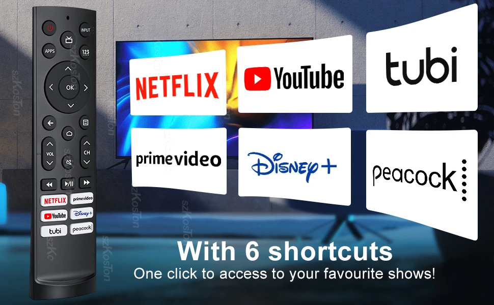 【Botones de atajos 】Netflix, Prime video,YouTube, Disney +, Tubi y Peacock.