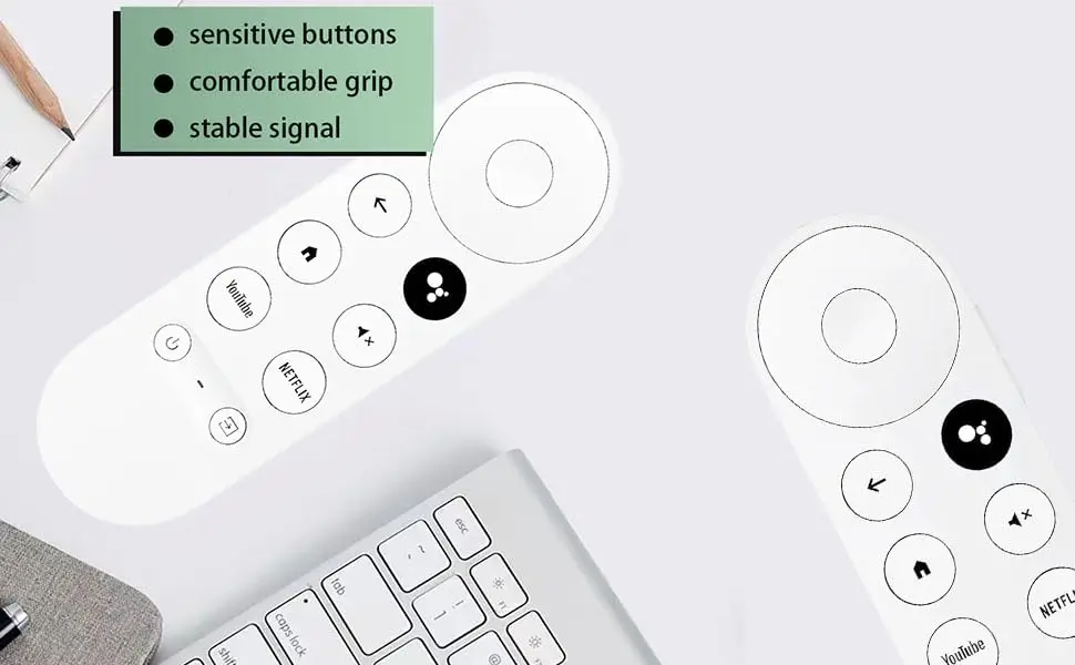 【Alta calidad】 El control remoto de repuesto del dispositivo Chromecast 4K Snow tiene las mismas funciones y rendimiento que el control remoto original, con un agarre cómodo y una señal estable. Es necesario instalar 2 pilas AAA (sin pilas).