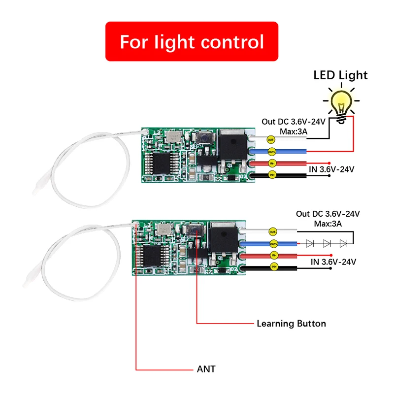 433mhz de Control remoto inalámbrico de RF DC 3,6 V 5V 9V 12V 24V 1CH Mini interruptor de relé lámpara LED controlador Micro transmisor receptor de DIY