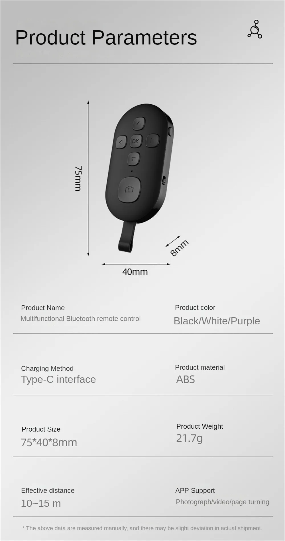 Tamaño del producto: 75*40*8mm