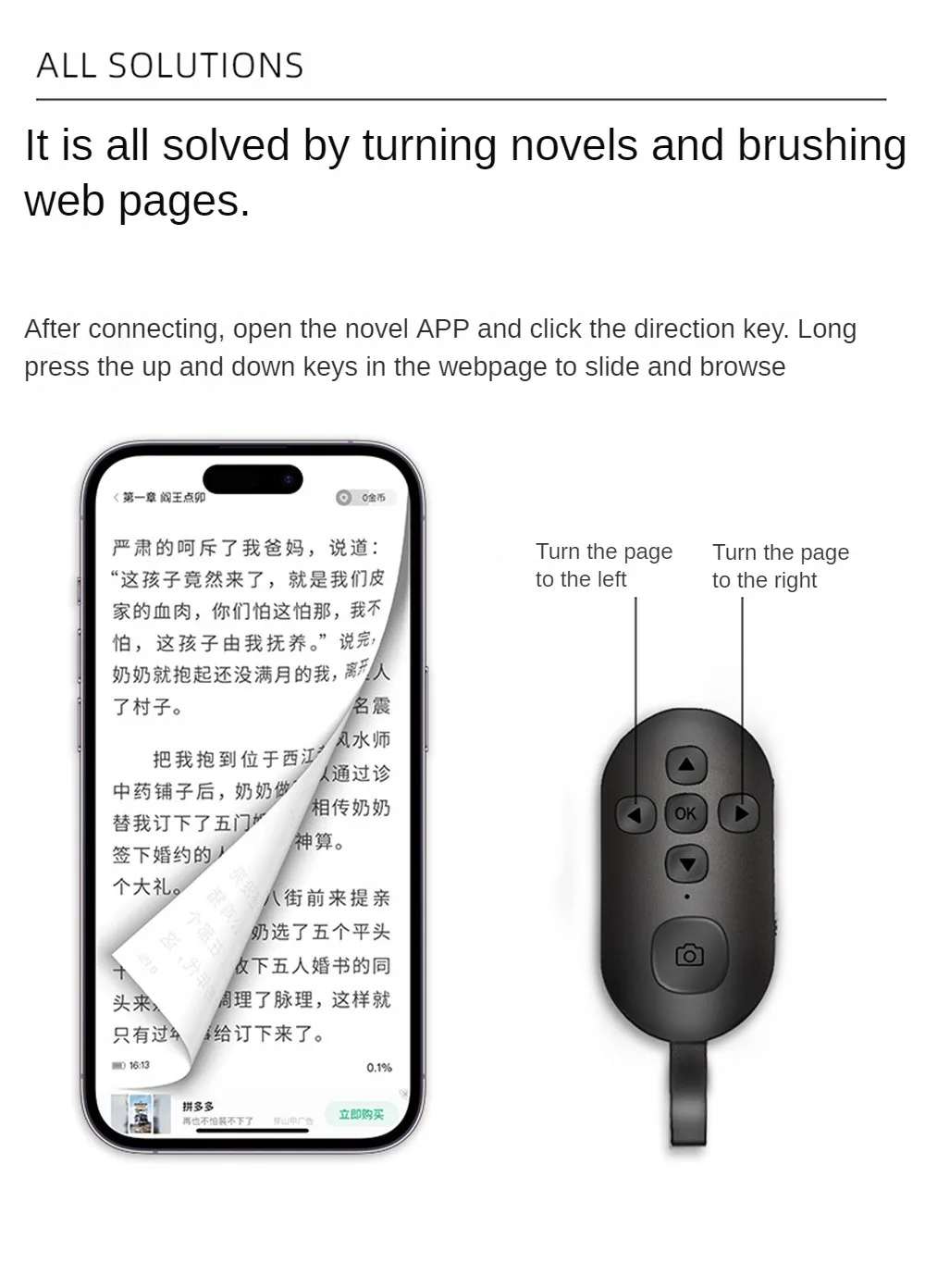 Funciones: tomar fotos, tomar fotos, pasar páginas, Douyin Likes, etc.
