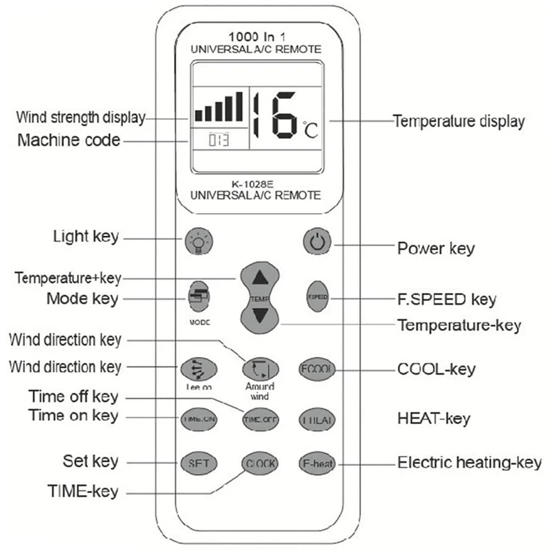 Comprar Mando A distancia Universal para aire acondicionado, Control remoto inalámbrico 1000 en 1 para aire acondicionado, K-1028E, CA, LCD Digital, consumo de energía