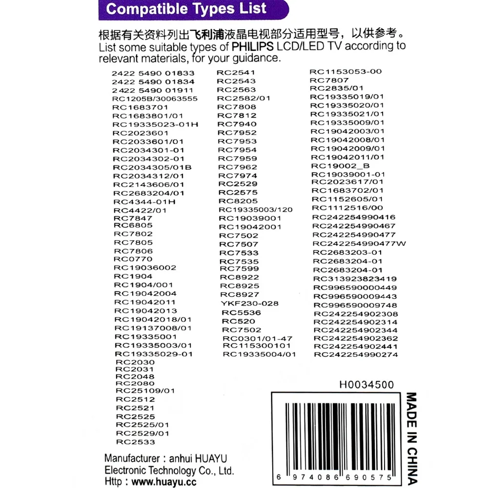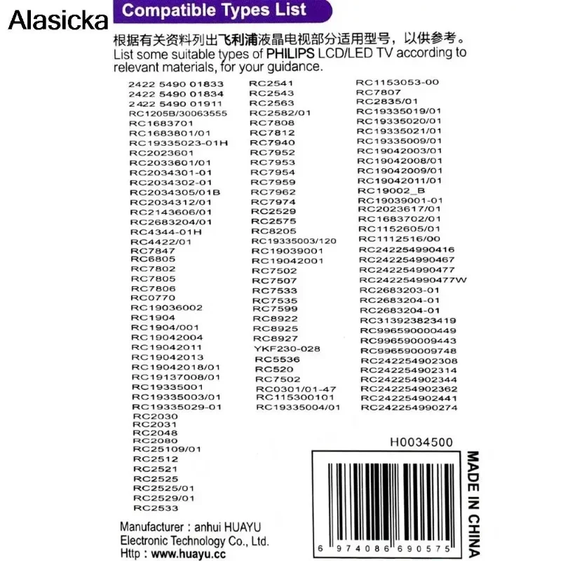 Especificación: Nombre del producto: control remoto Tipo: Mando a distancia de TV para PHILIPS Modelo: RM-L1030 Alimentación: 2 pilas AAA (no incluidas) Proceso de material: ABS Color: negro Tamaño: aprox.160X60X20mm/6,29X2,36X0,78 pulgadas Peso neto: aproximadamente 65 g