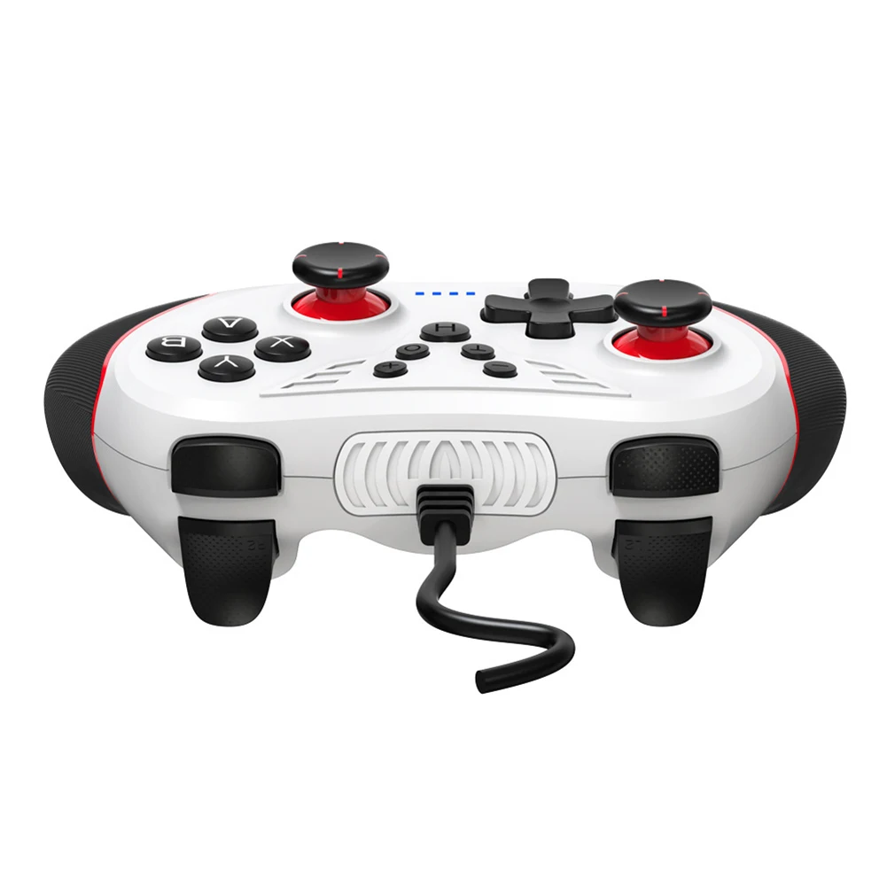 3. Experiencia de juego mejorada:El controlador de juego con cable está equipado con funciones de vibración y disparo rápido, mejorando la experiencia general del juego. La función de vibración agrega retroalimentación inmersiva, mientras que la función de disparo rápido permite entradas de botones rápidas y precisas, proporcionando una ventaja en juegos de ritmo rápido.