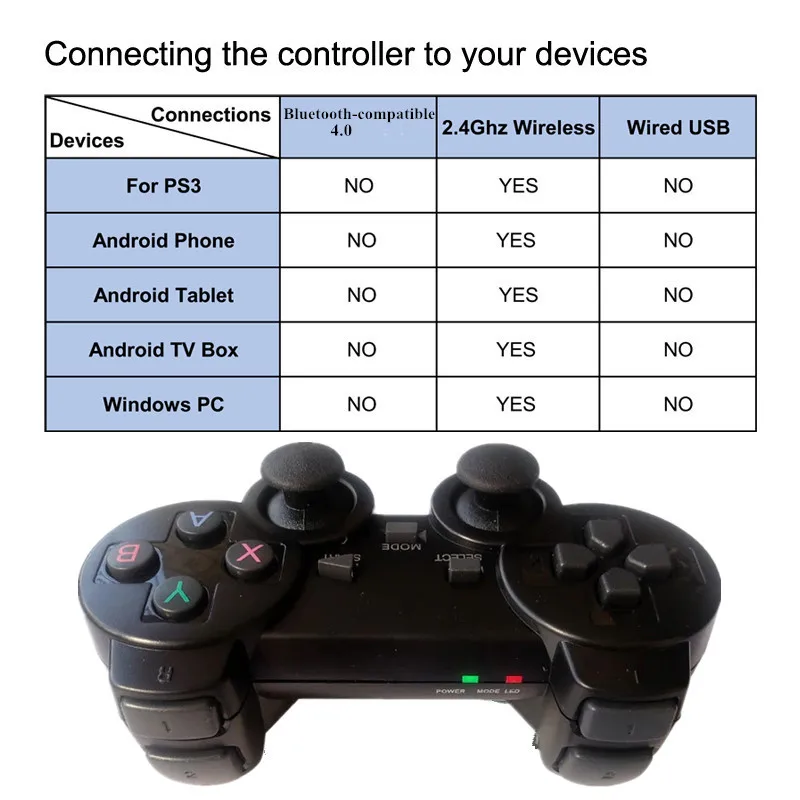 1. Mando inalámbrico de 2,4G, sin compatibilidad con Bluetooth. Compatible con PC, teléfono móvil Android, Android Pad, TV Box, Smart TV, consola ps3. Consola Super X pro... no es compatible con dispositivos iOS.